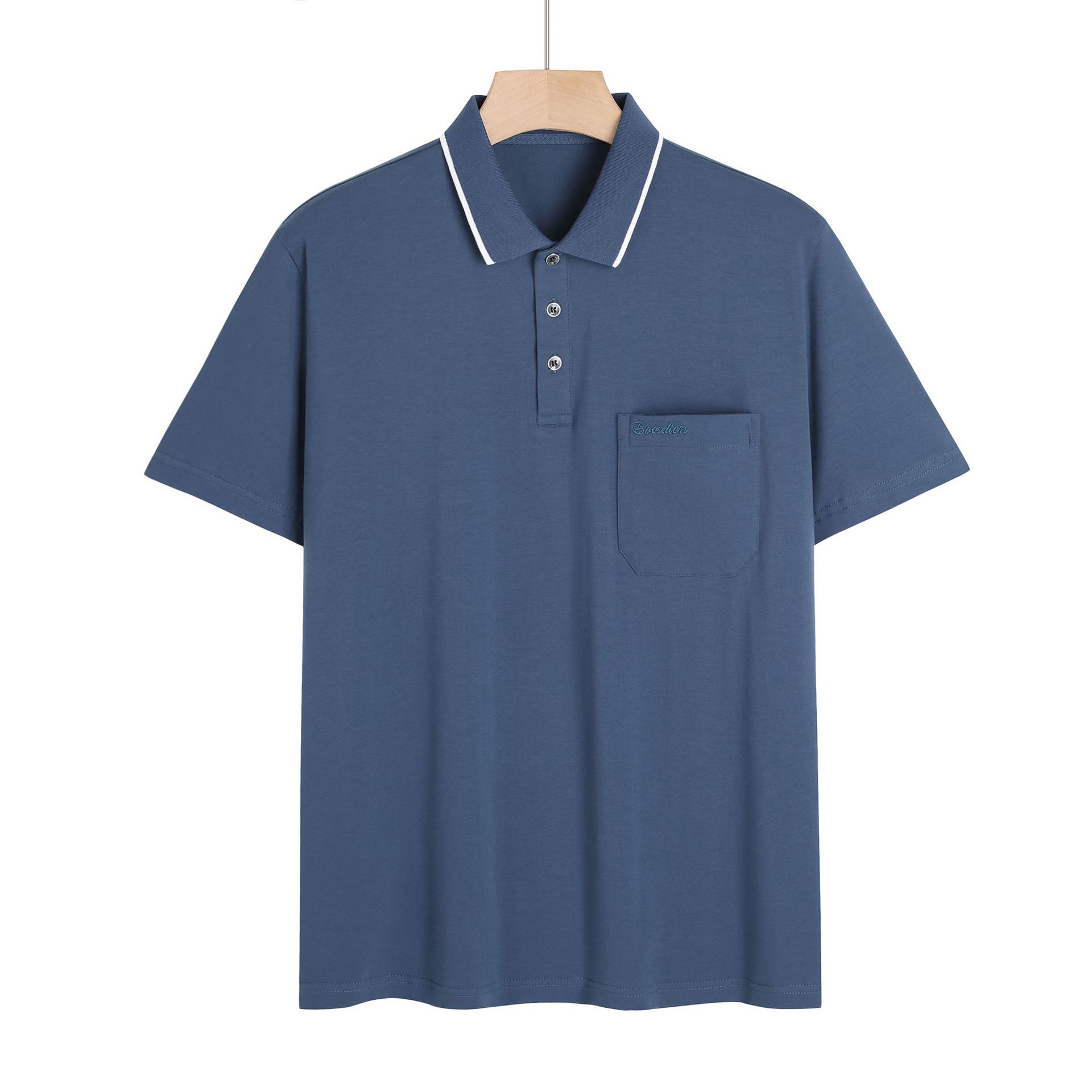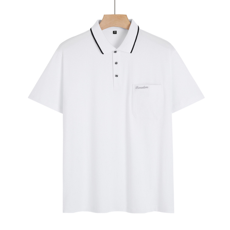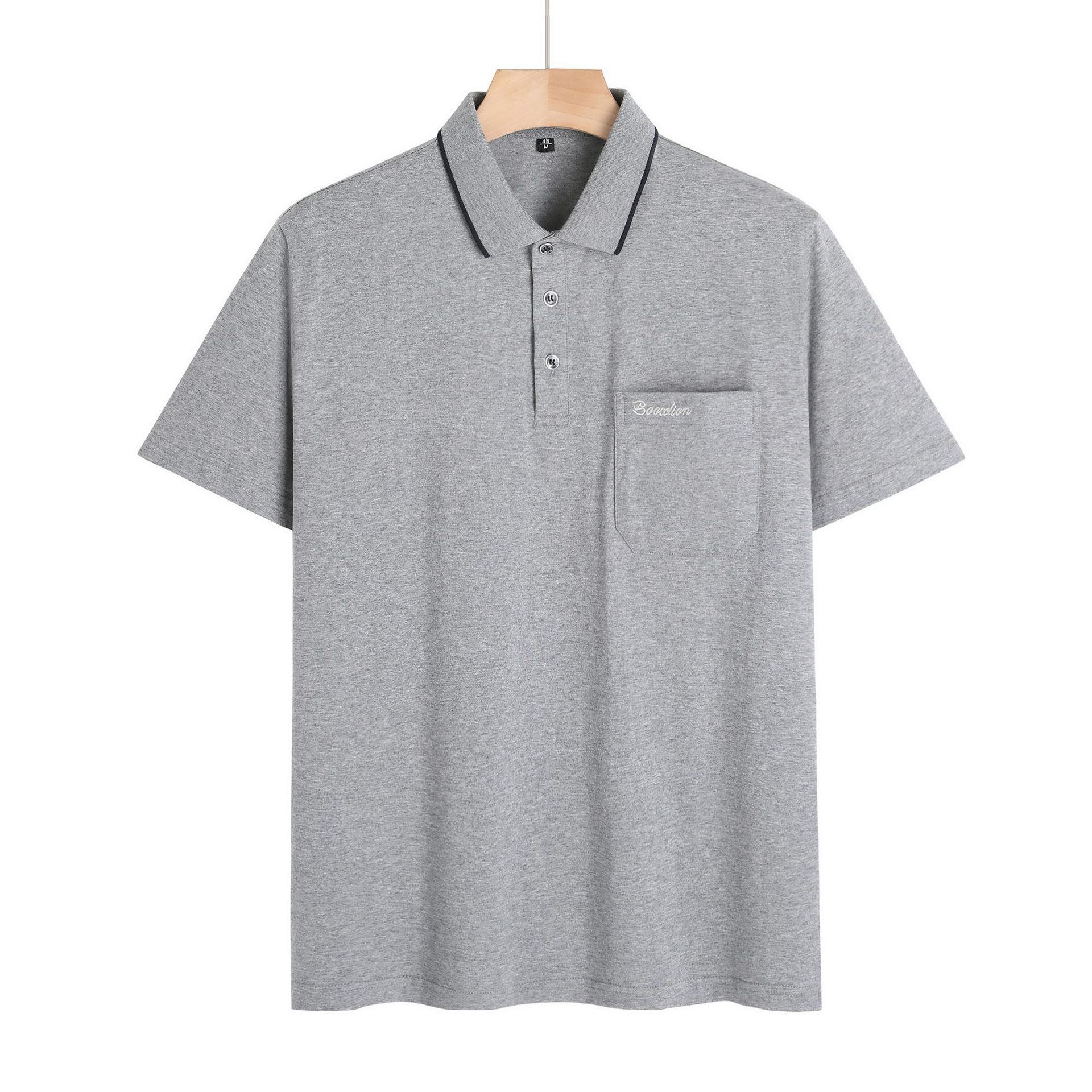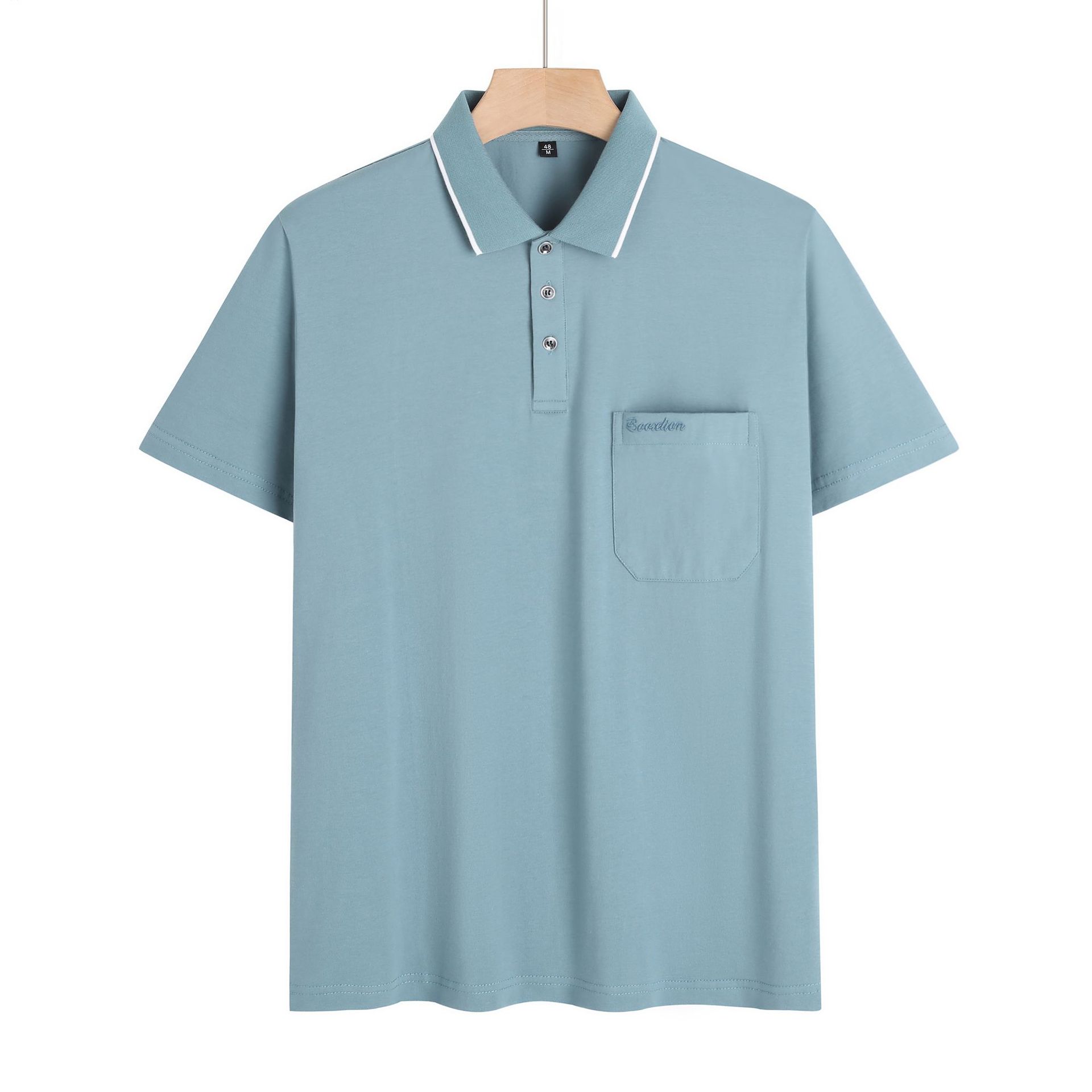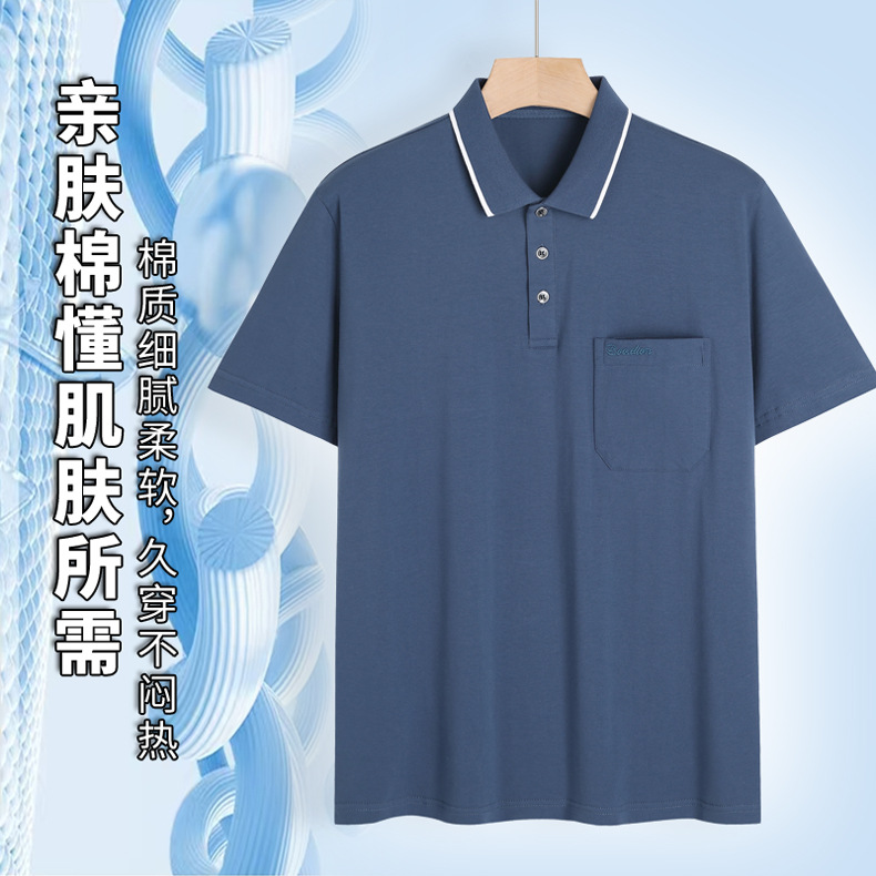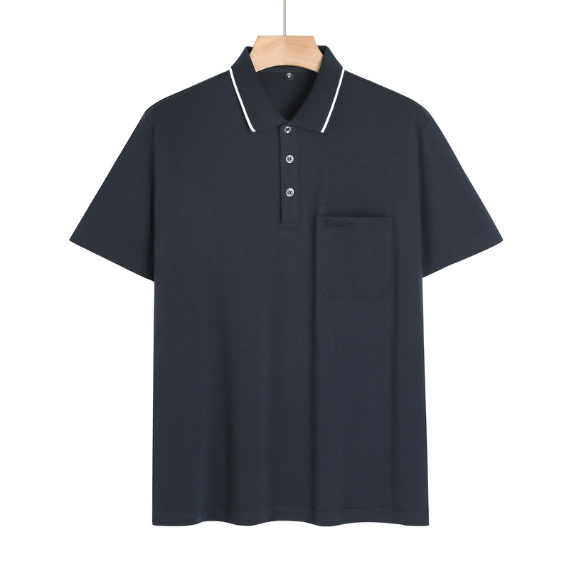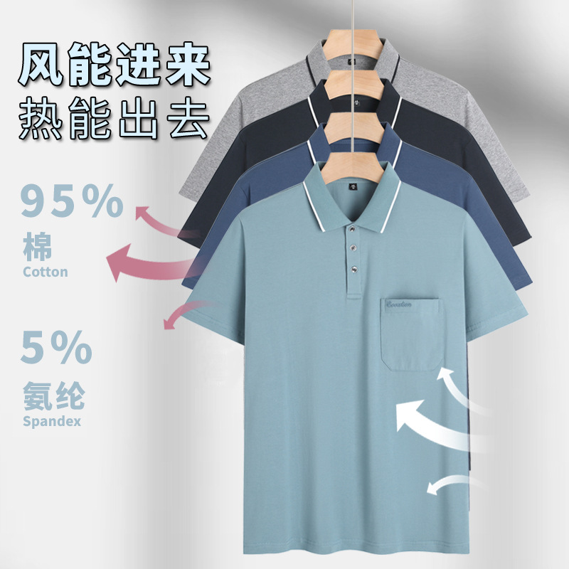 여름 중년 아빠의 순면 반팔 남성 티셔츠 라펠 폴로 셔츠 중년 및 노년 남성용 포켓이 있는 상의