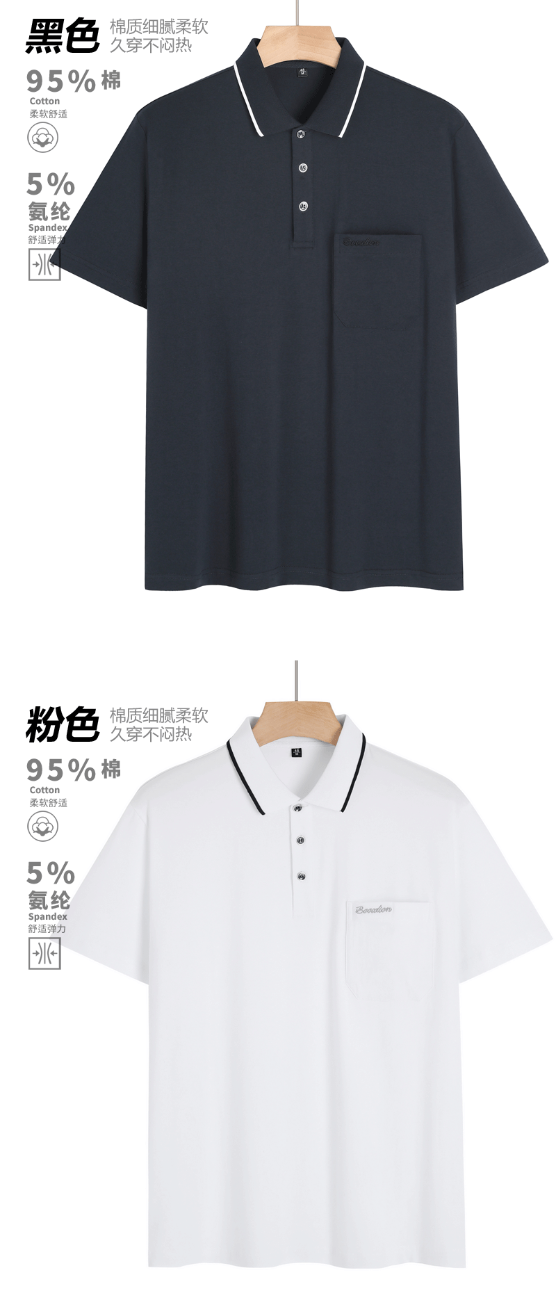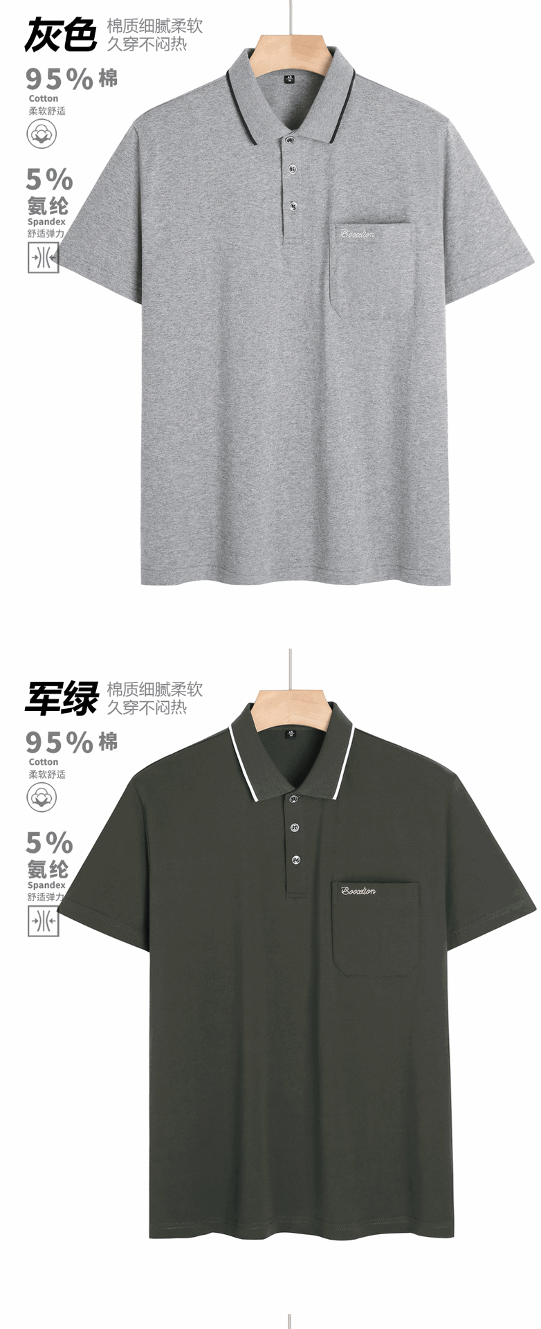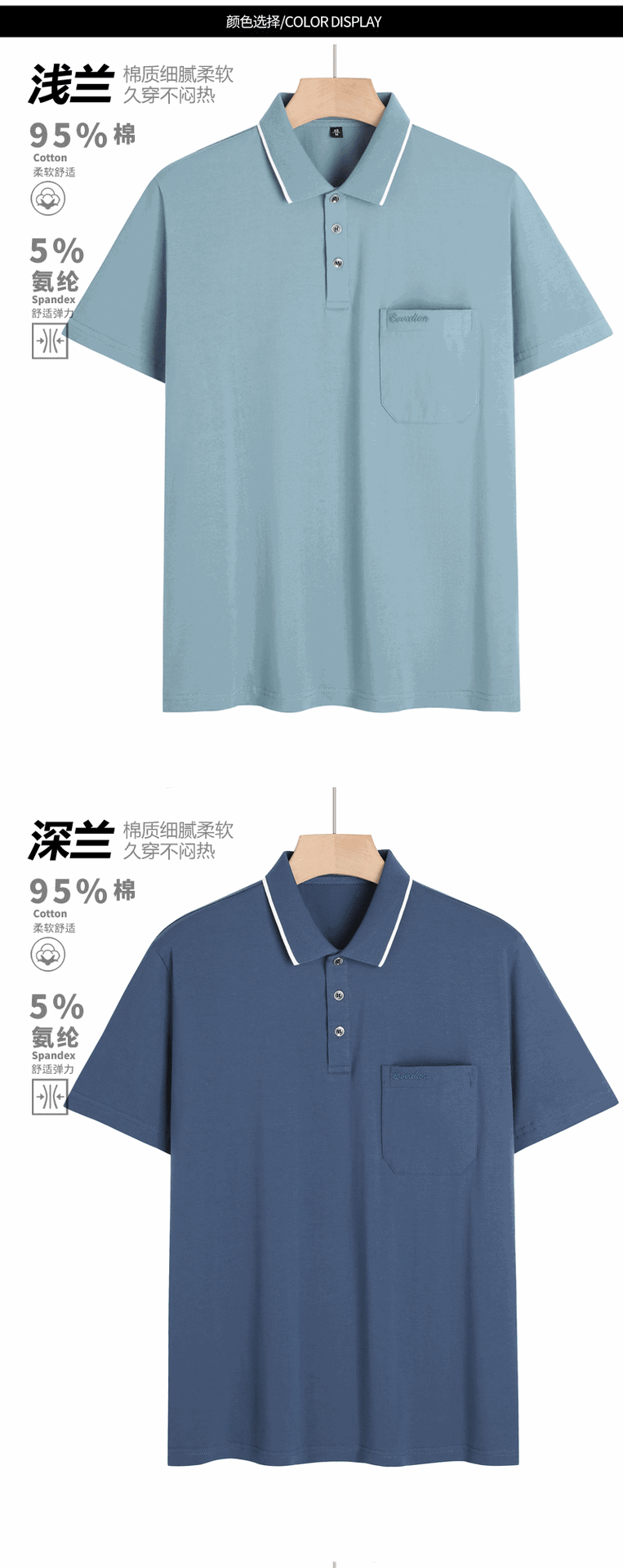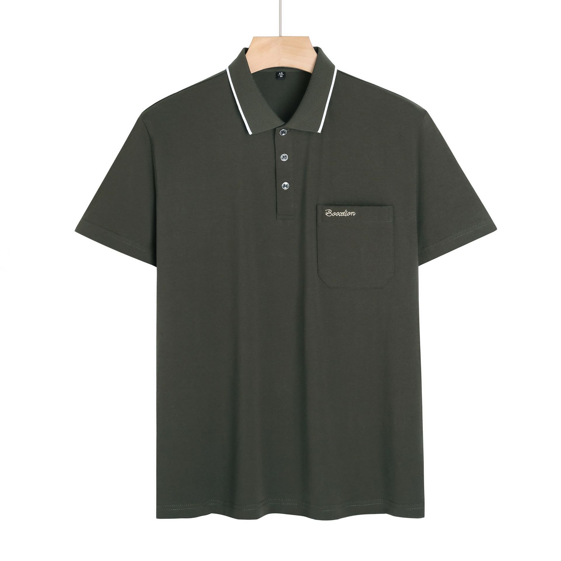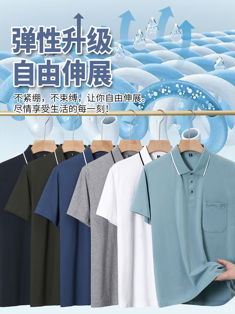 여름 중년 아빠의 순면 반팔 남성 티셔츠 라펠 폴로 셔츠 중년 및 노년 남성용 포켓이 있는 상의