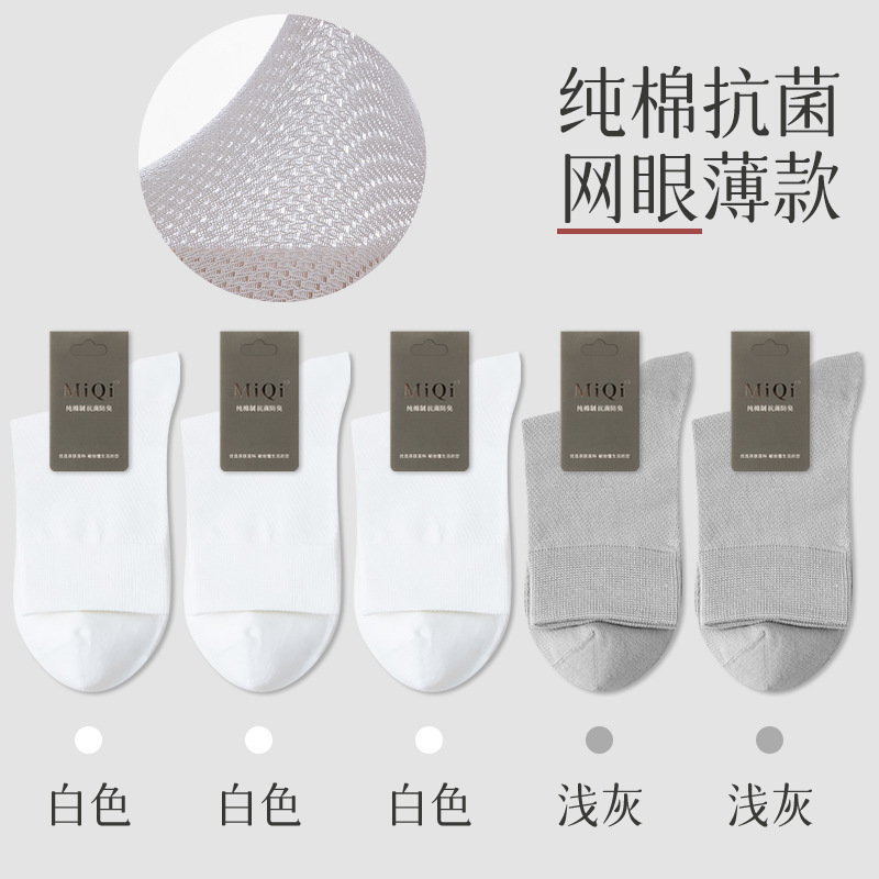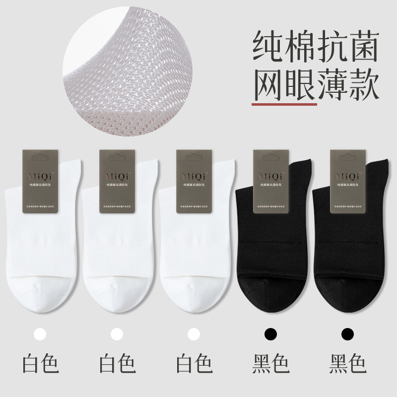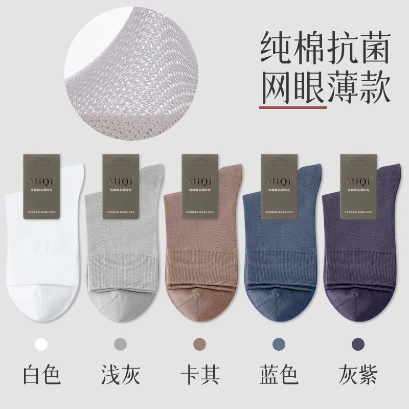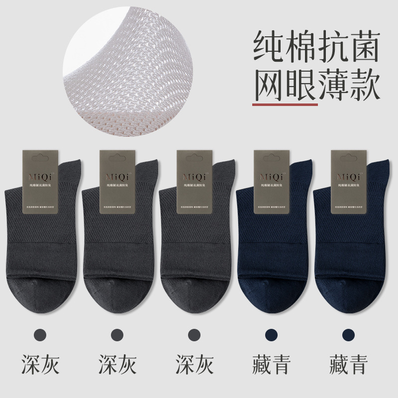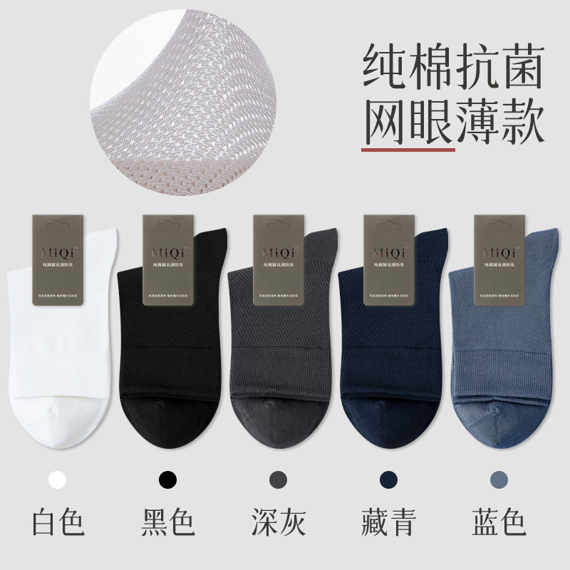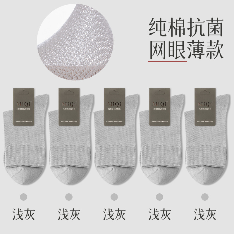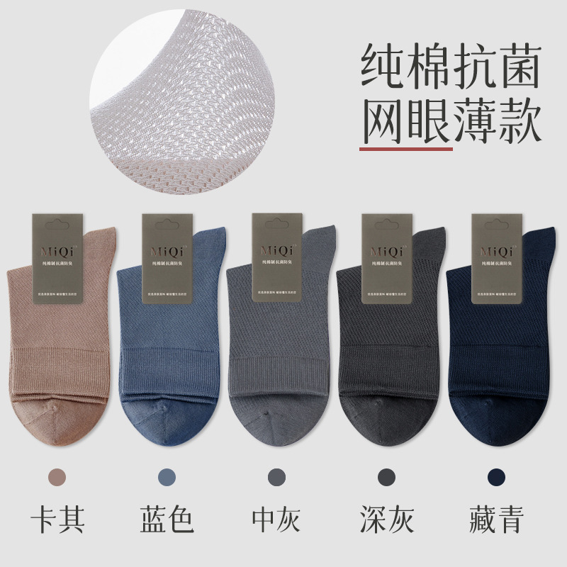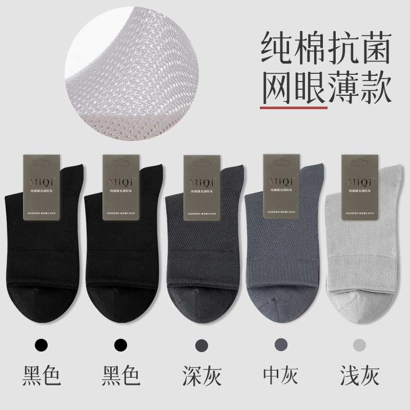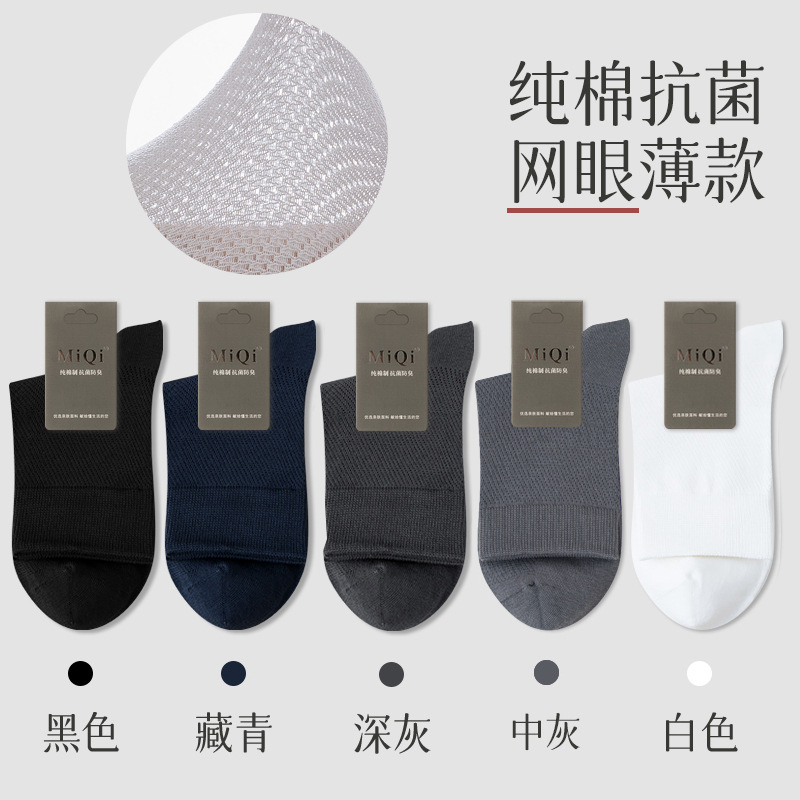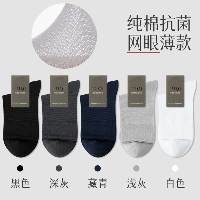 남성용 여름 얇은 순면 메쉬 양말, 통기성, 탈취, 땀흡수, 무봉제, 비즈니스용 중목 양말 도매스토어 가기