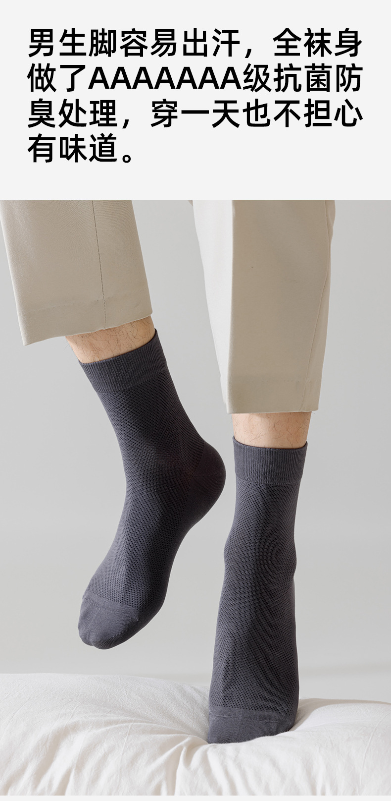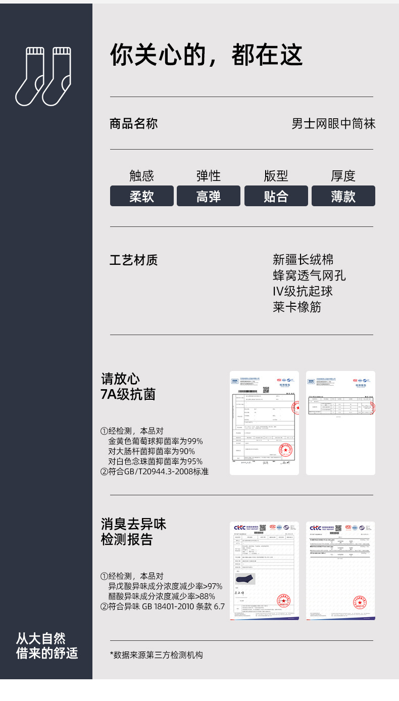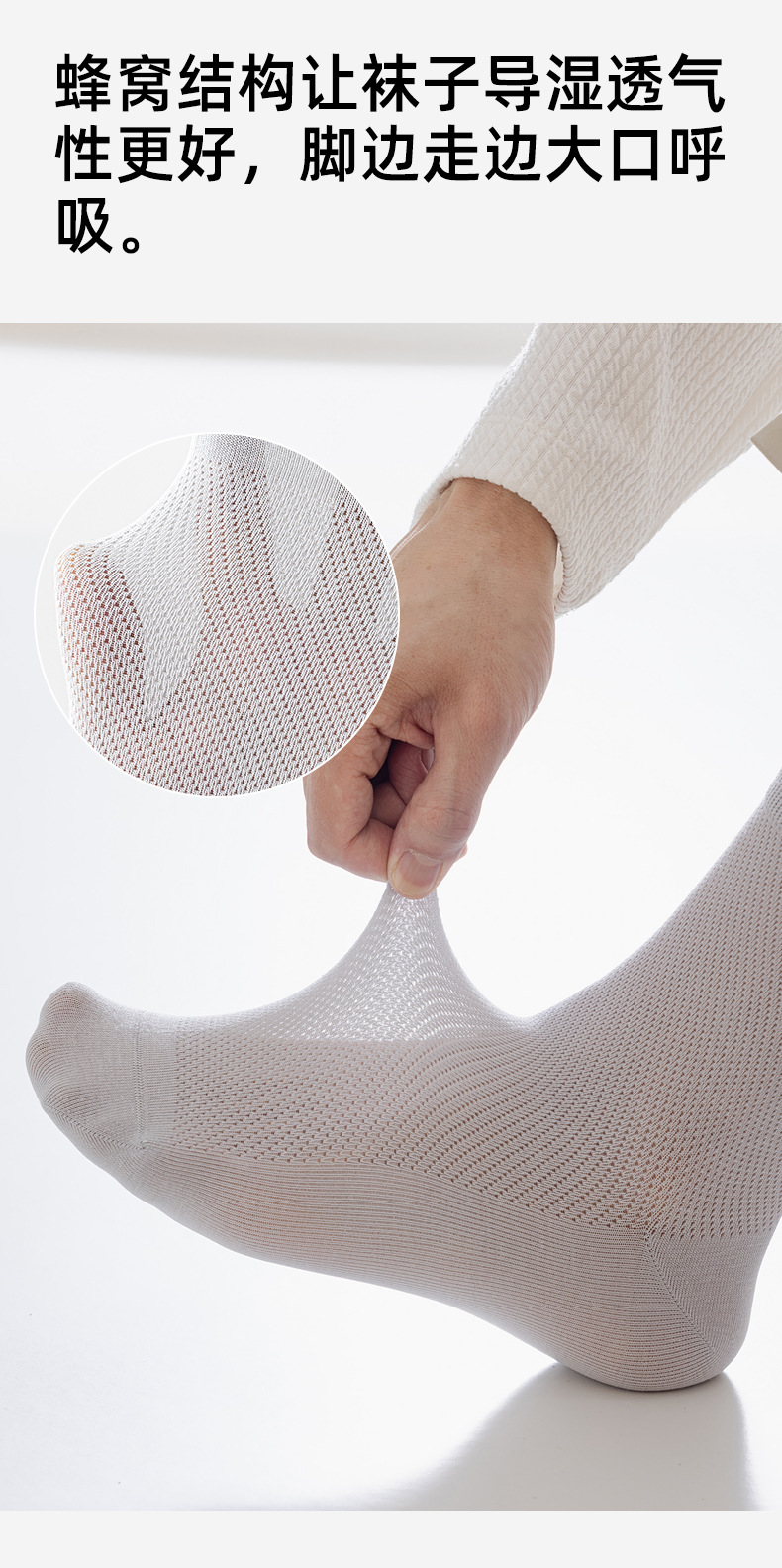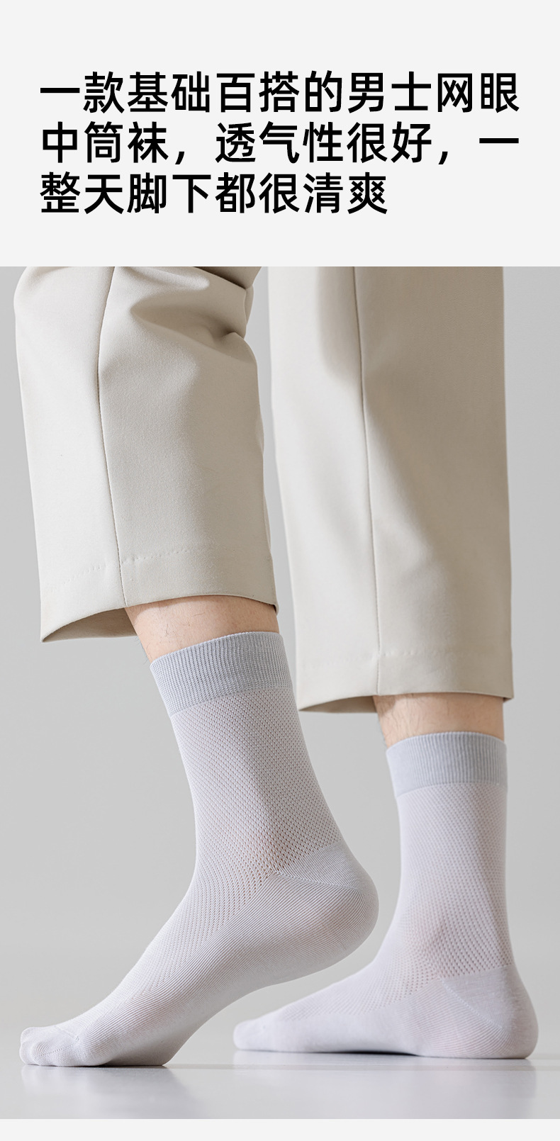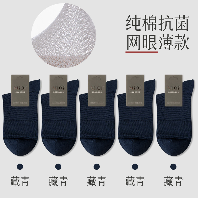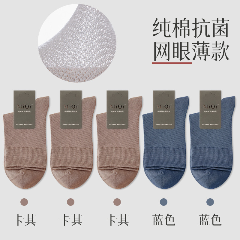 남성용 여름 얇은 순면 메쉬 양말, 통기성, 탈취, 땀흡수, 무봉제, 비즈니스용 중목 양말 도매스토어 가기