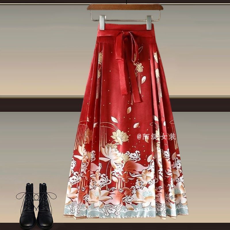 • 한푸 상의 + 990 붉은 말얼굴 스커트 투피스 세트