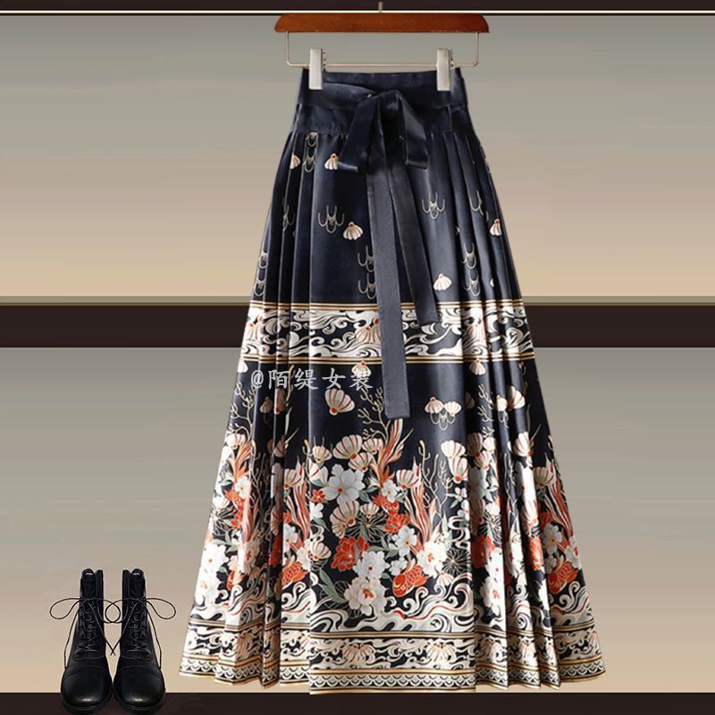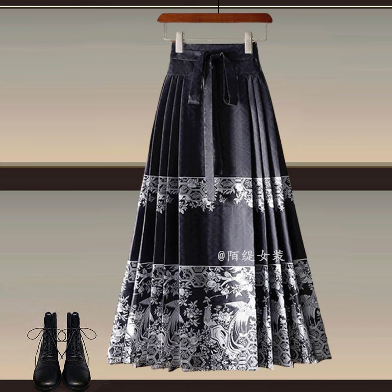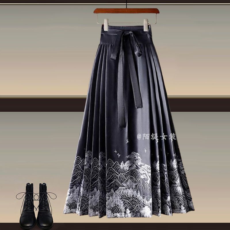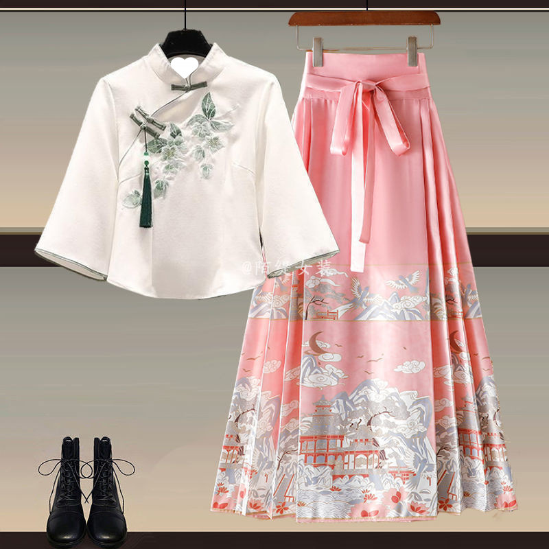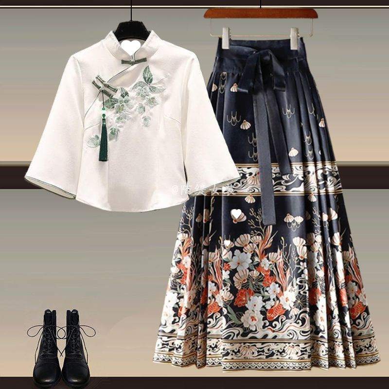 • Hanfu 탑 + 977 검은 말 얼굴 스커트 투피스 세트