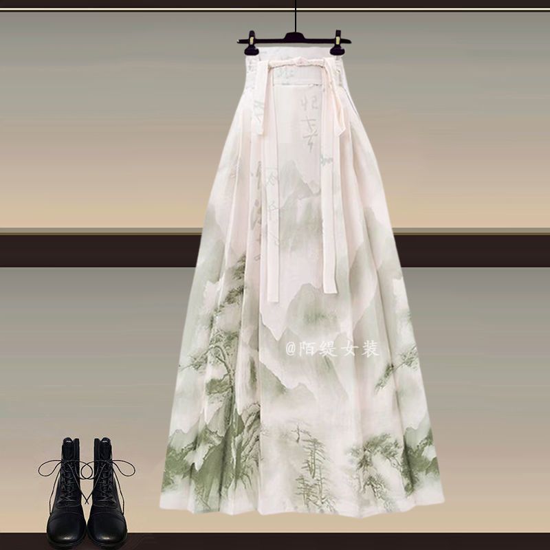 민트 그린 맘보 스타일 새로운 중국 스타일 Hanfu 탑 드레스 여성 2025 여름 새로운 국가 스타일 말 얼굴 스커트 정장스토어 가기