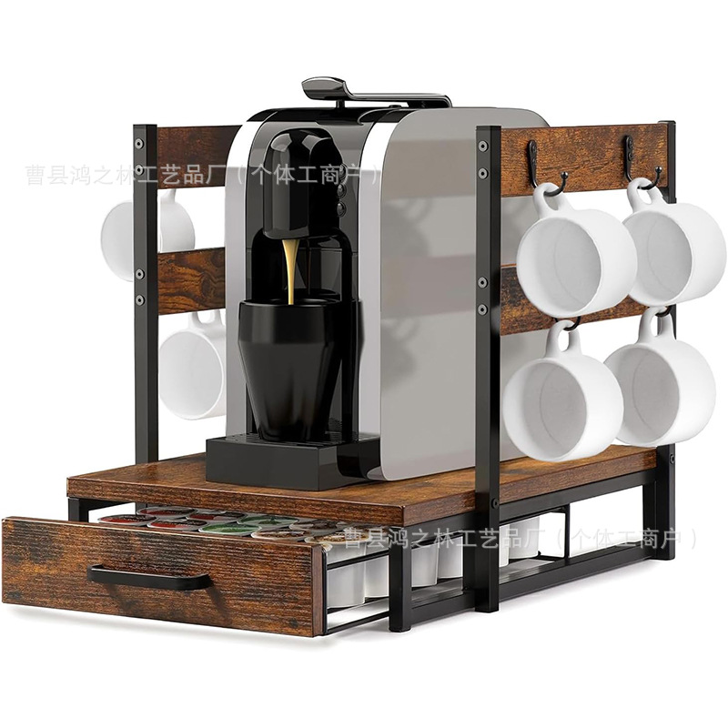 나무 커피 머신 보관 랙 데스크탑 다층 나무 커피 컵 보관 랙 서랍 커피 캡슐 나무 상자
