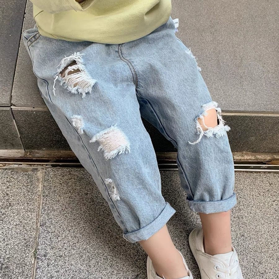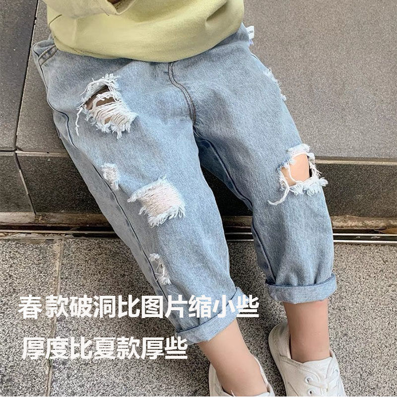 남아 바지 봄 아동복 베이비 찢어진 청바지 2025 신작 가을 의류 한국식 아동 9부 바지스토어 가기