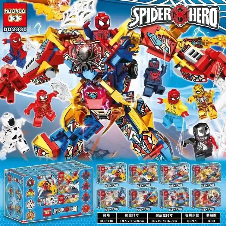 Duoduo DD2230 스파이더 맨 대형 메카 조립 빌딩 블록 피규어 어벤저 스 어린이 작은 입자 소년 장난감 선물
