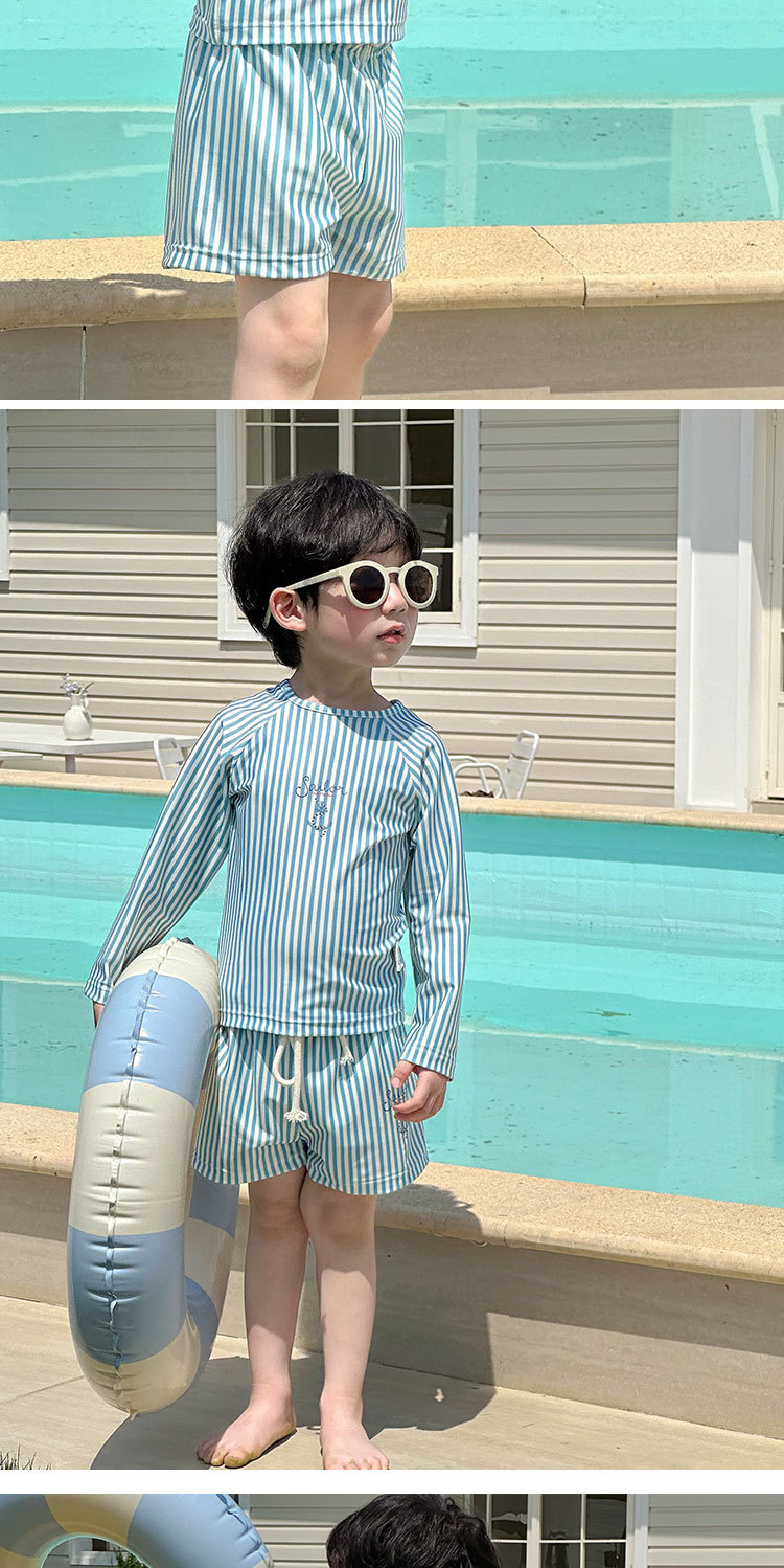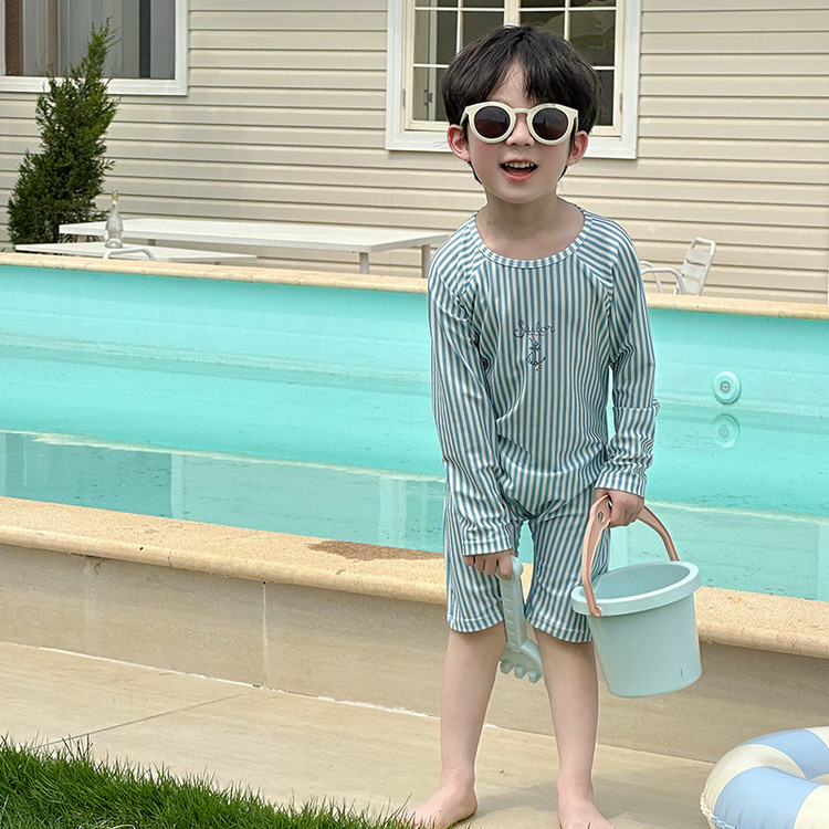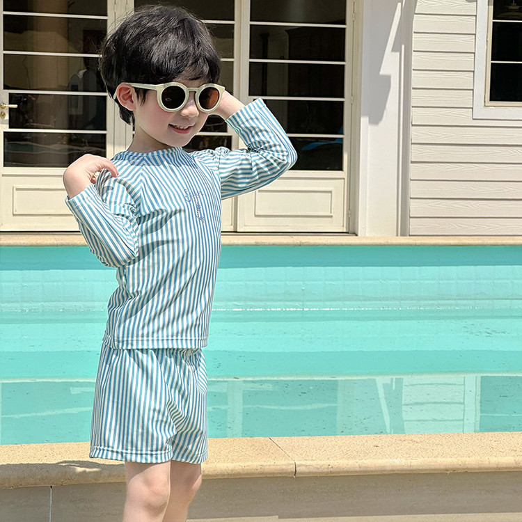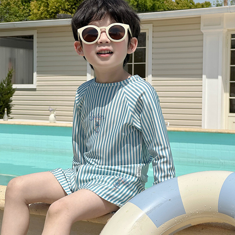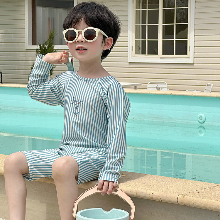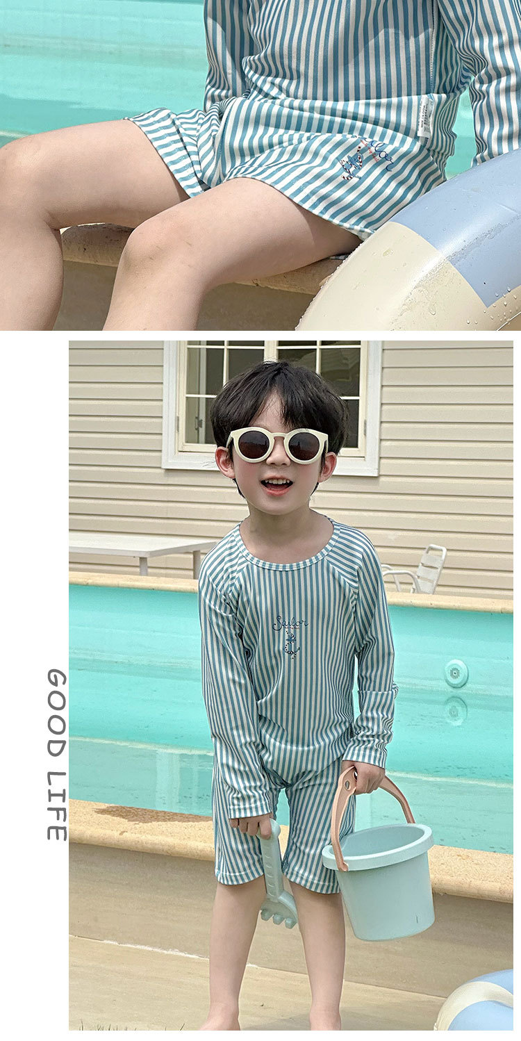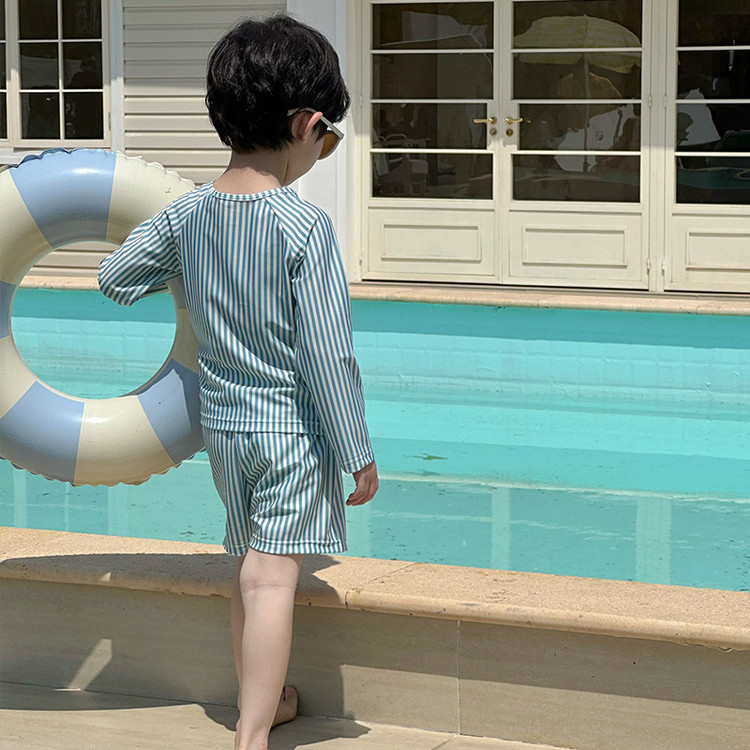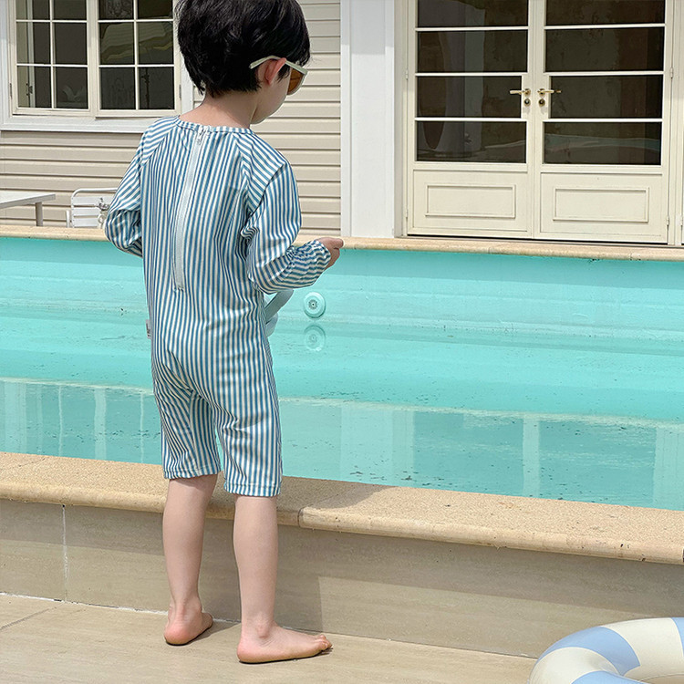 남성과 여성을 위한 새로운 아동용 수영복, 긴팔 자외선 차단 수영복, 심플한 줄무늬 해변 온천 휴가 속건 수영복스토어 가기