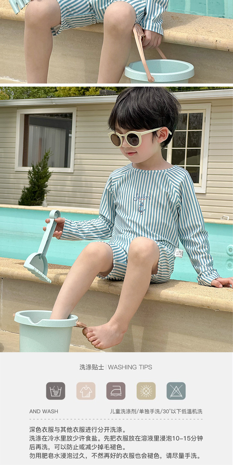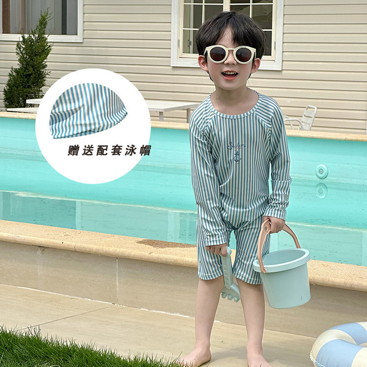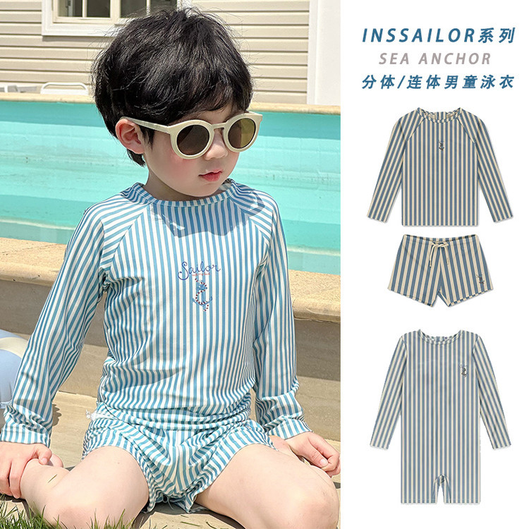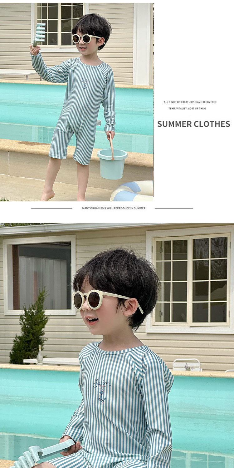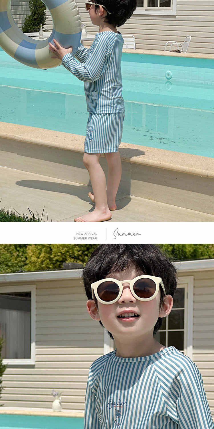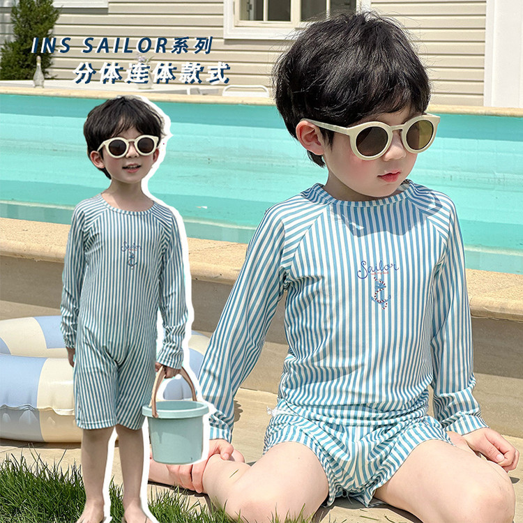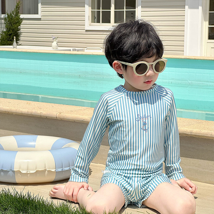 남성과 여성을 위한 새로운 아동용 수영복, 긴팔 자외선 차단 수영복, 심플한 줄무늬 해변 온천 휴가 속건 수영복스토어 가기