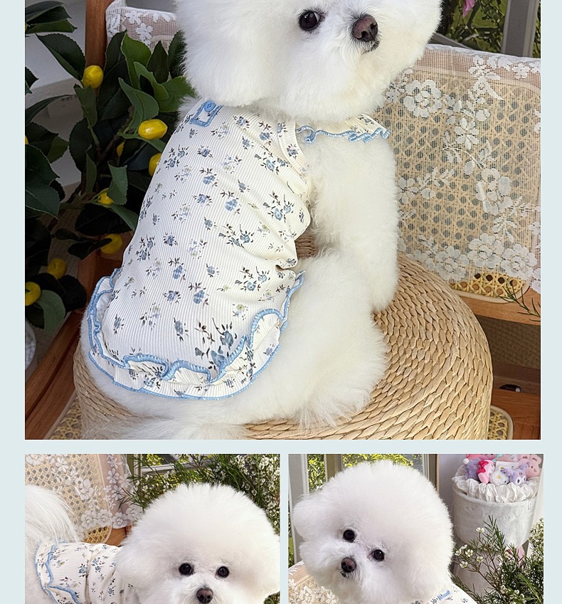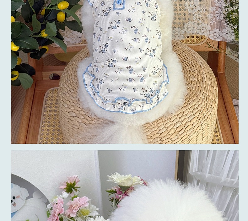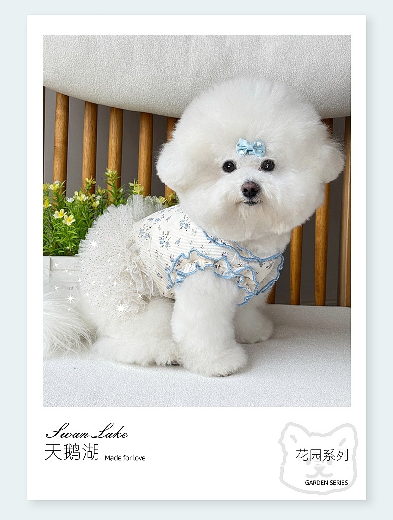 여름 새로운 고양이 개 인쇄 홈 옷 여름 아이스 실크 코튼 스커트 테디 빅시 애완 동물 옷