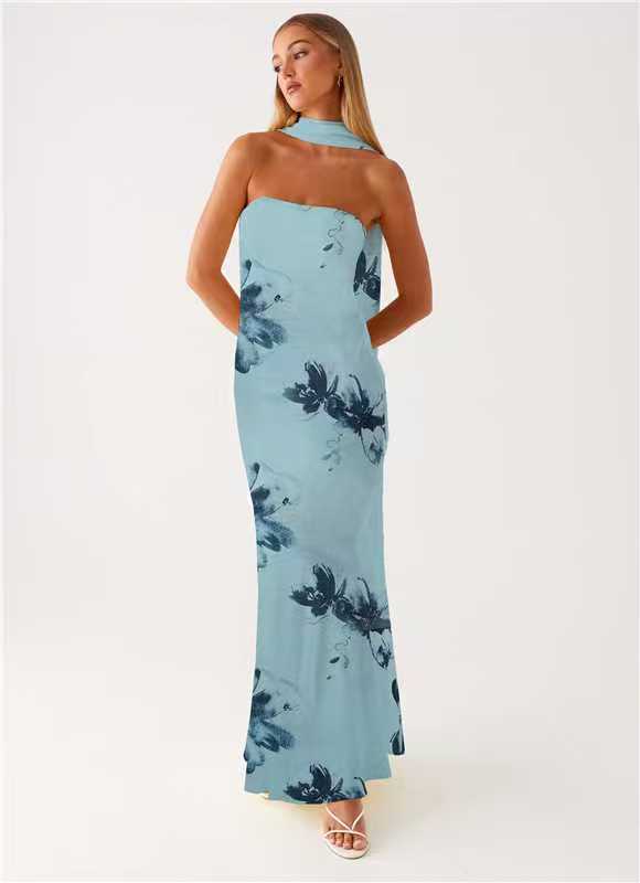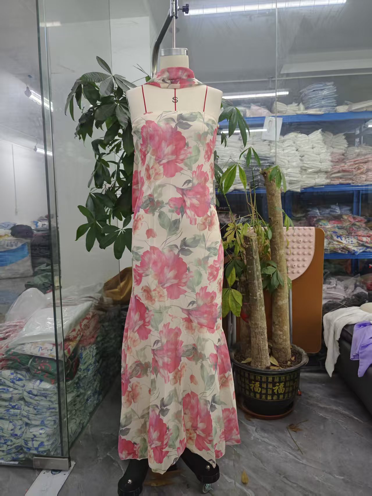 차 브레이크 아름다운 프랑스 스타일 우아한 꽃 멀티 컬러 슬링 해변 휴일 피쉬 원피스 타이트 허리 싼야 슬리밍 샌드스토어 가기