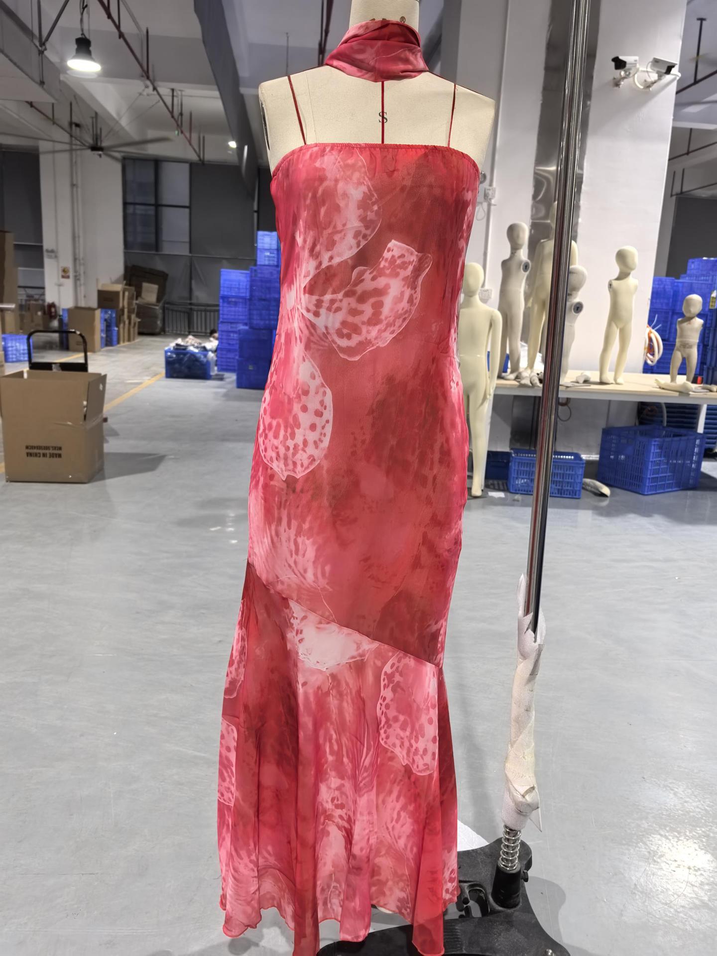 차 브레이크 아름다운 프랑스 스타일 우아한 꽃 멀티 컬러 슬링 해변 휴일 피쉬 원피스 타이트 허리 싼야 슬리밍 샌드
