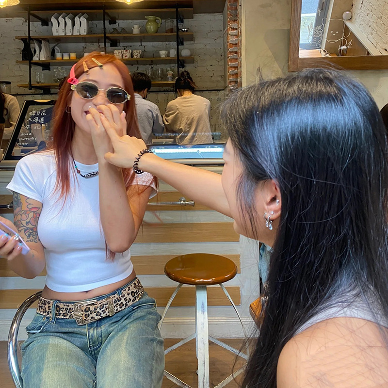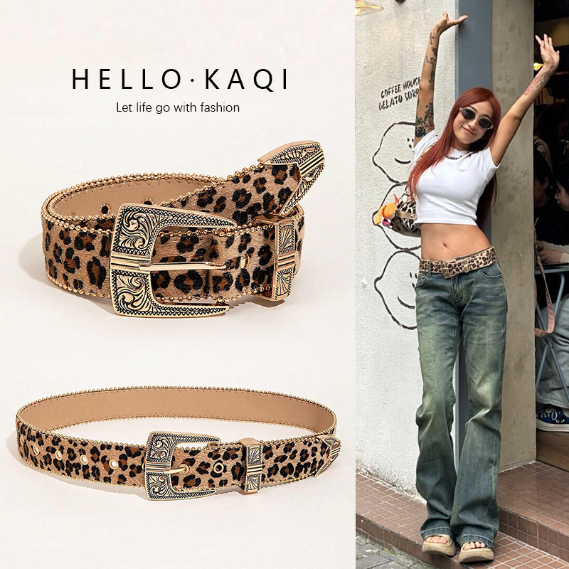 미국 스타일 레트로 레오파드 핫 소녀 스타일 벨트 여성 금속 조각 디자인 벨트 스커트 청바지 장식