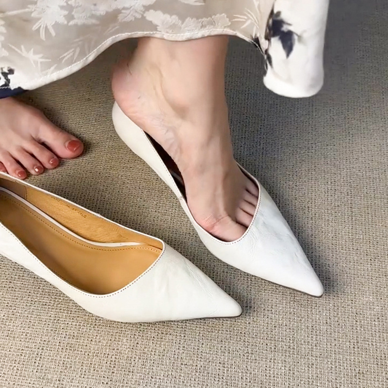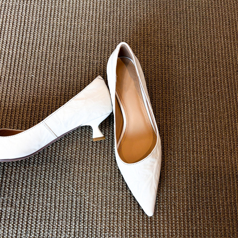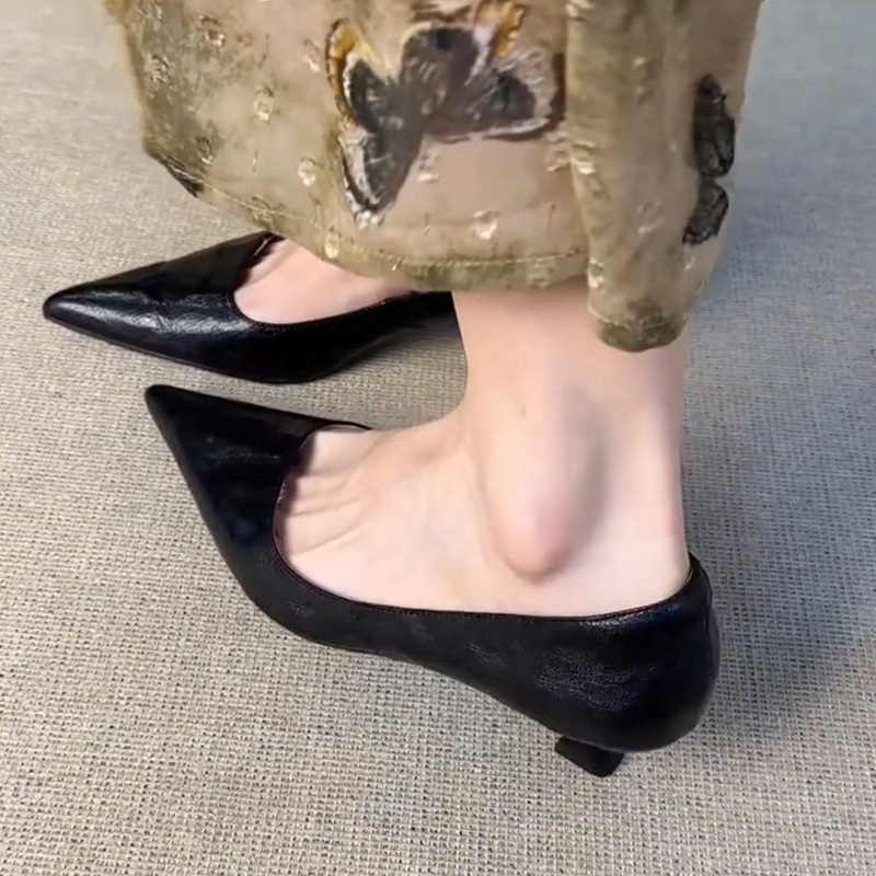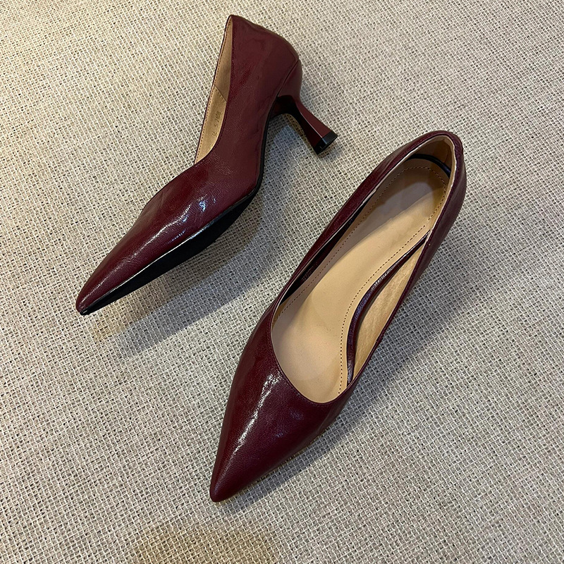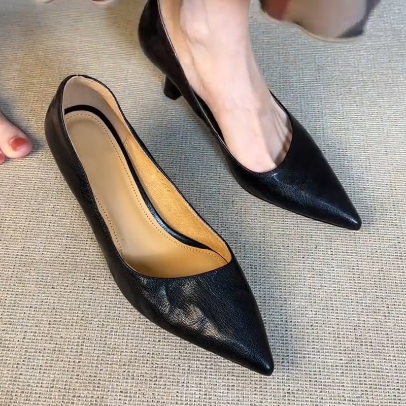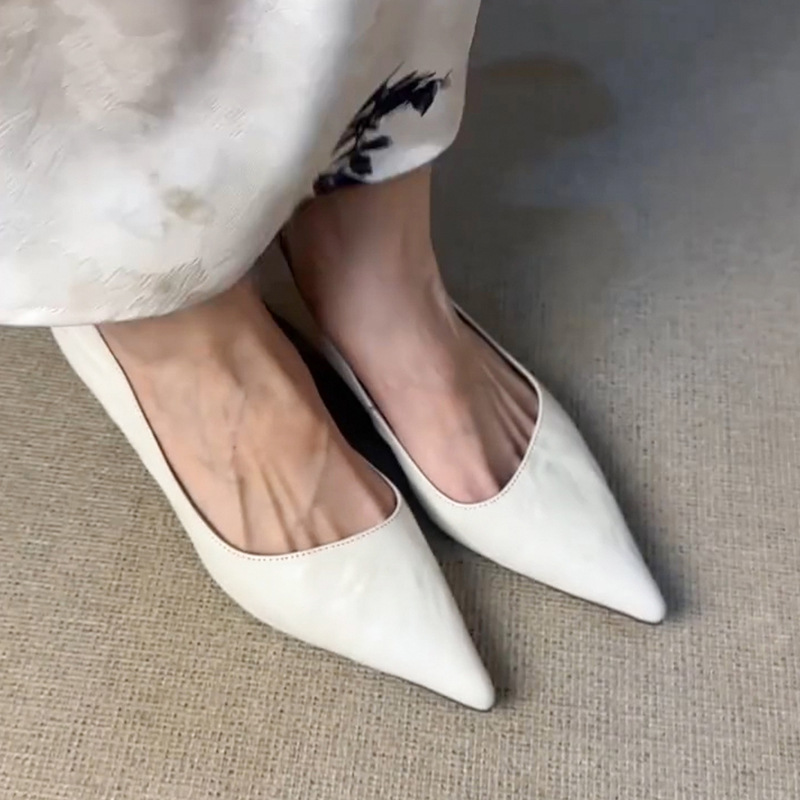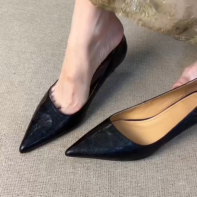 [재고] 슈퍼 부드러운 양가죽 프랑스 기질 뾰족한 얕은 입 신발 여성 봄 가을 치마 하이힐로 새로운