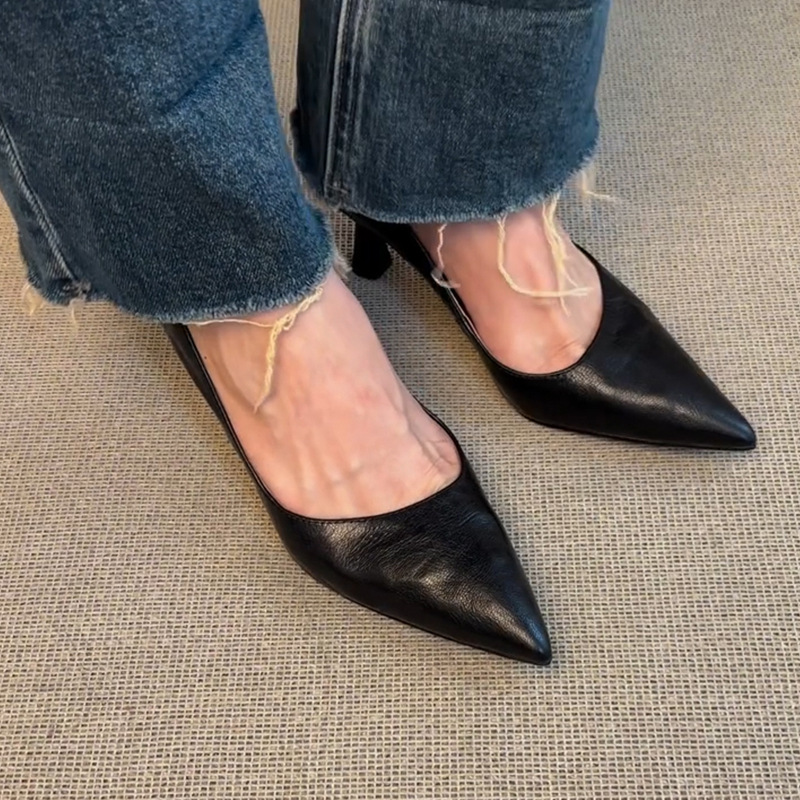 [재고] 슈퍼 부드러운 양가죽 프랑스 기질 뾰족한 얕은 입 신발 여성 봄 가을 치마 하이힐로 새로운스토어 가기