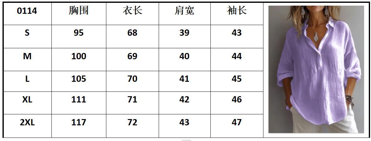 2025 봄 여름 유럽과 미국의 단색 캐주얼 루즈 긴팔 린넨 v 넥 셔츠 여성용 아마존 셔츠
