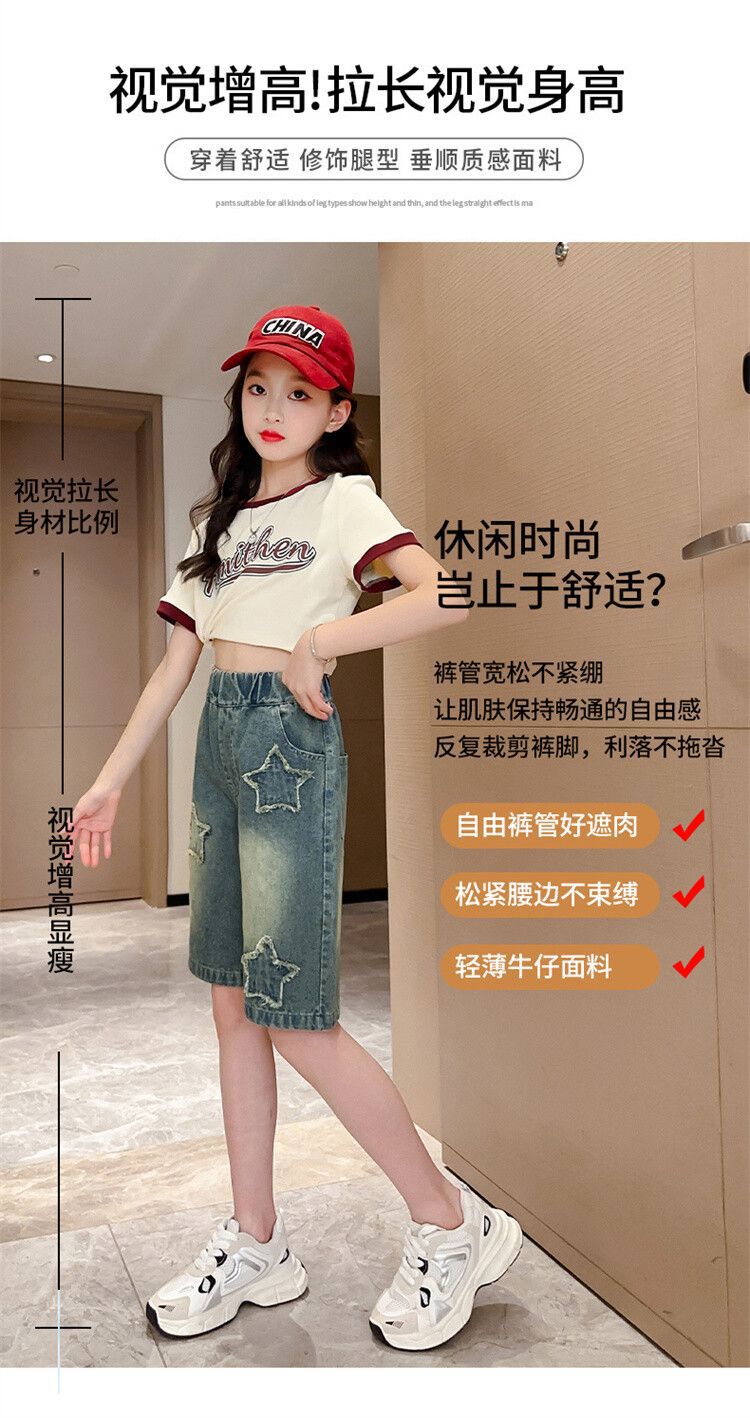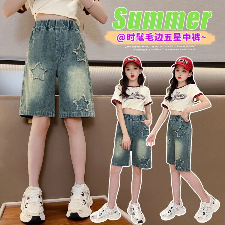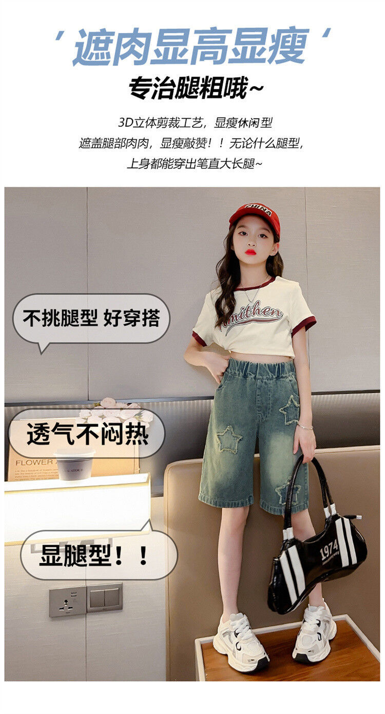 빈티지 5 점 데님 반바지 남성과 여성의 중간 길이 바지 넓은 탄성 중간 허리 넓은 다리 여름 얇은 슬림 핏 느슨한 바지스토어 가기