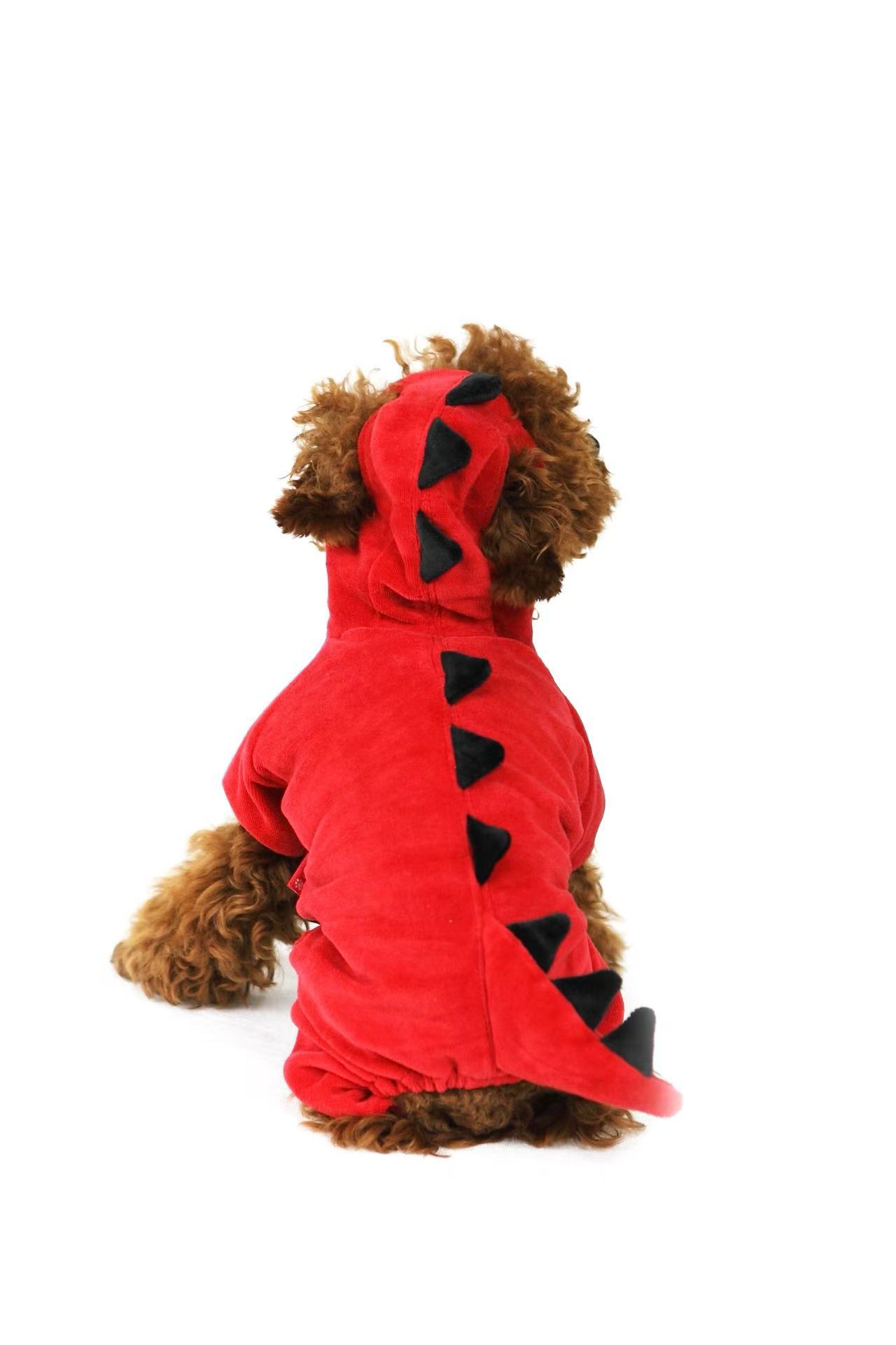 【名称】宠物服装春秋狗狗天鹅绒泰迪法斗比熊柯基四脚恐龙变身装批发厂家