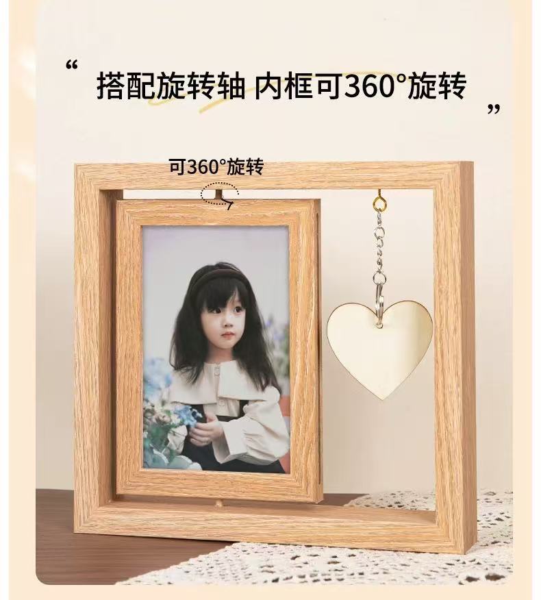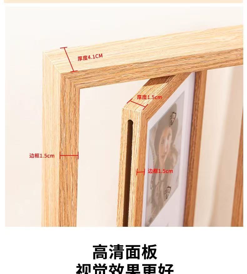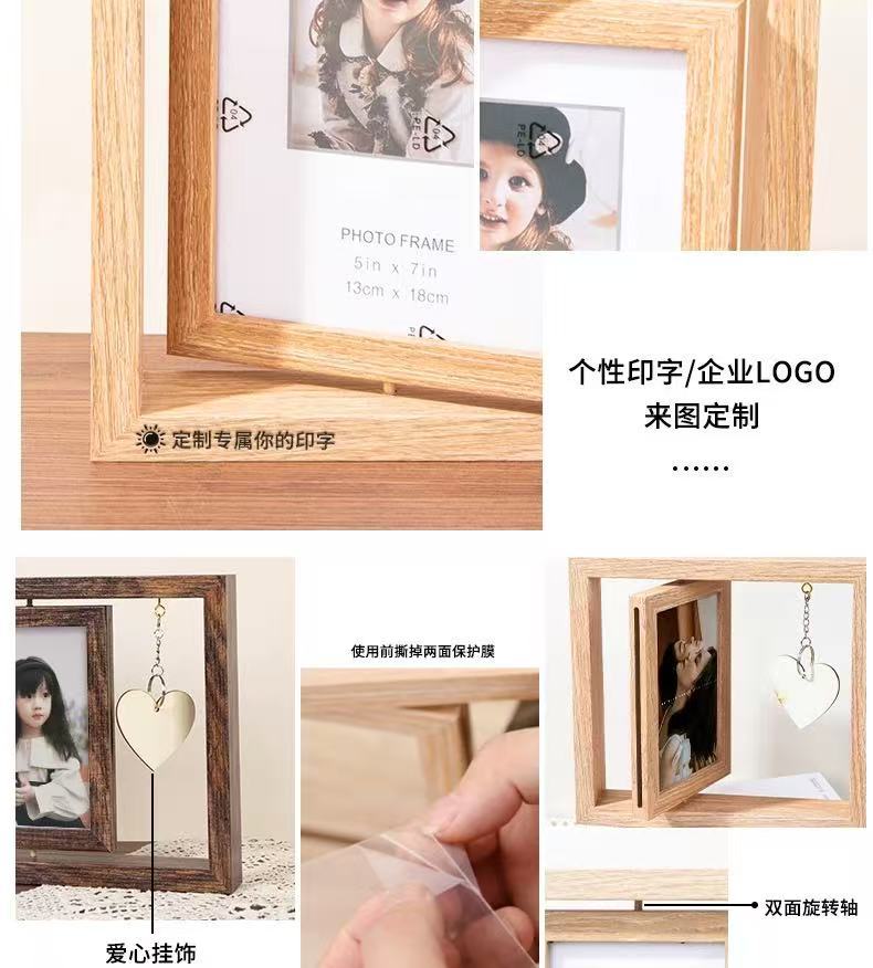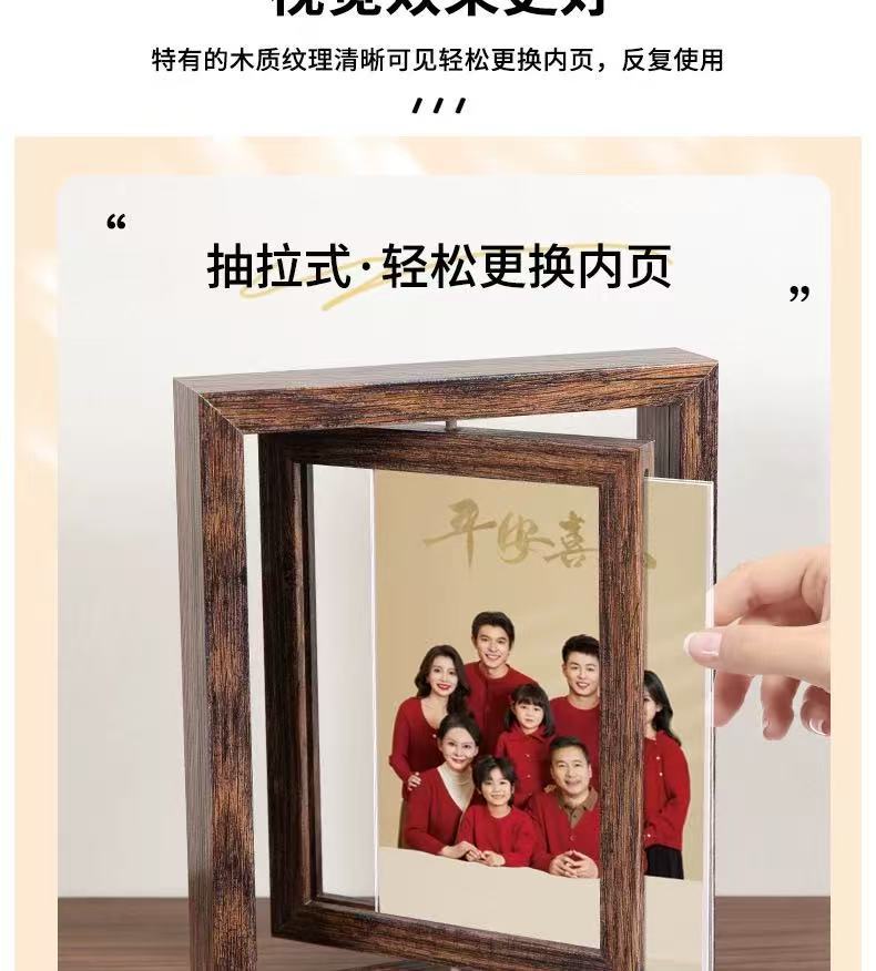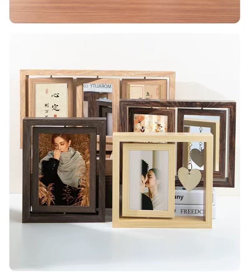 국경 복고풍 어두운 다크 브라운 창조적 인 양면 회전 사진 프레임 6 인치 테이블 나무 프레임 휴일 선물