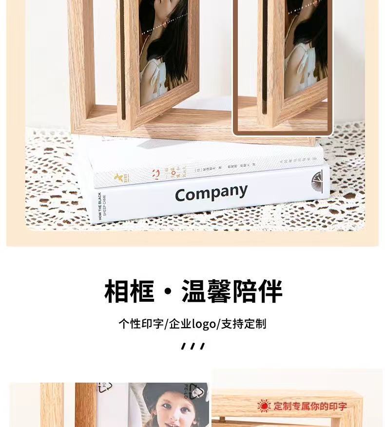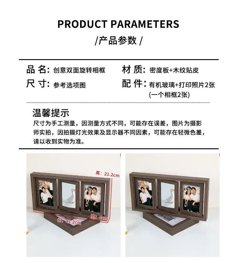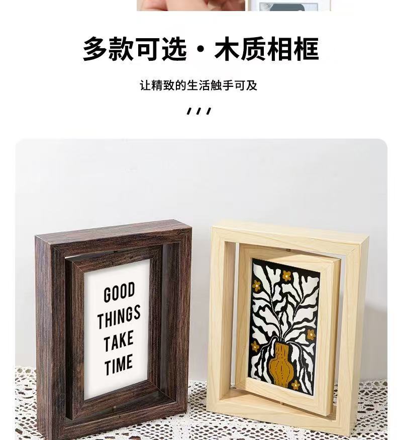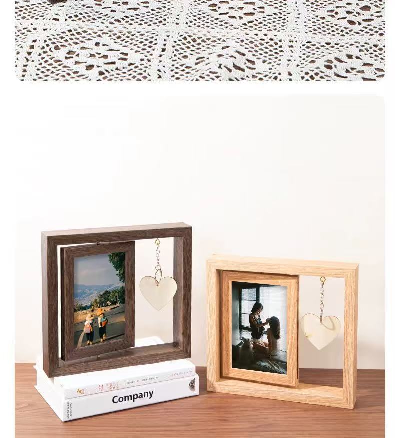 국경 복고풍 어두운 다크 브라운 창조적 인 양면 회전 사진 프레임 6 인치 테이블 나무 프레임 휴일 선물스토어 가기