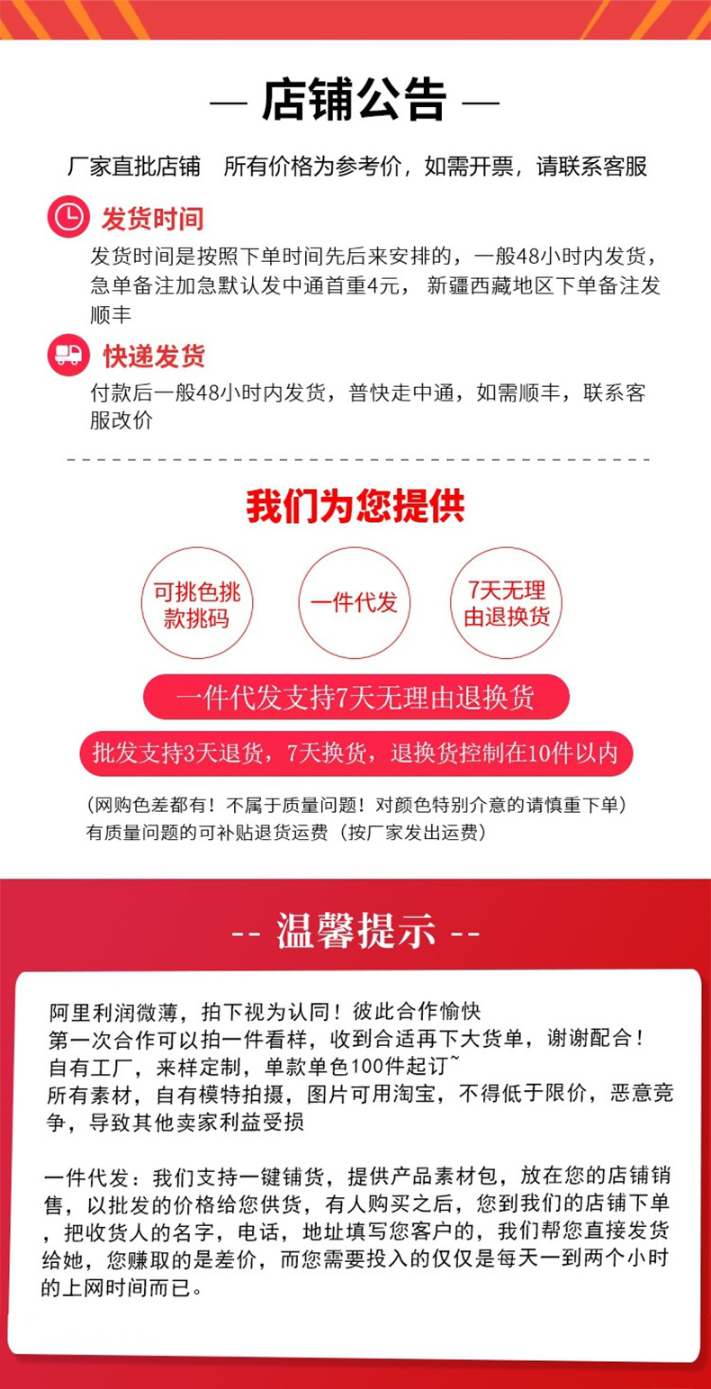 4、客服工作时间为 9:00-21:00,17:00前付款的客户尽量安排当天发出(节假日顺延)