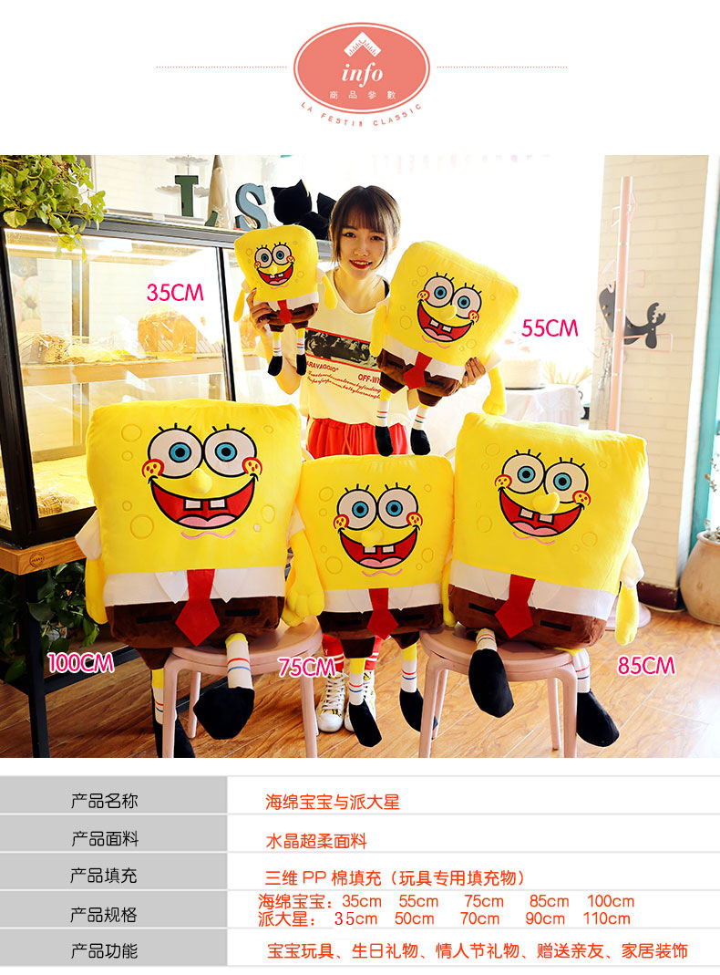 스폰지 밥 파이 대형 스타 인형 플러시 장난감 인형 그리퍼 헝겊 인형 어린이 선물 수면 베개 도매스토어 가기