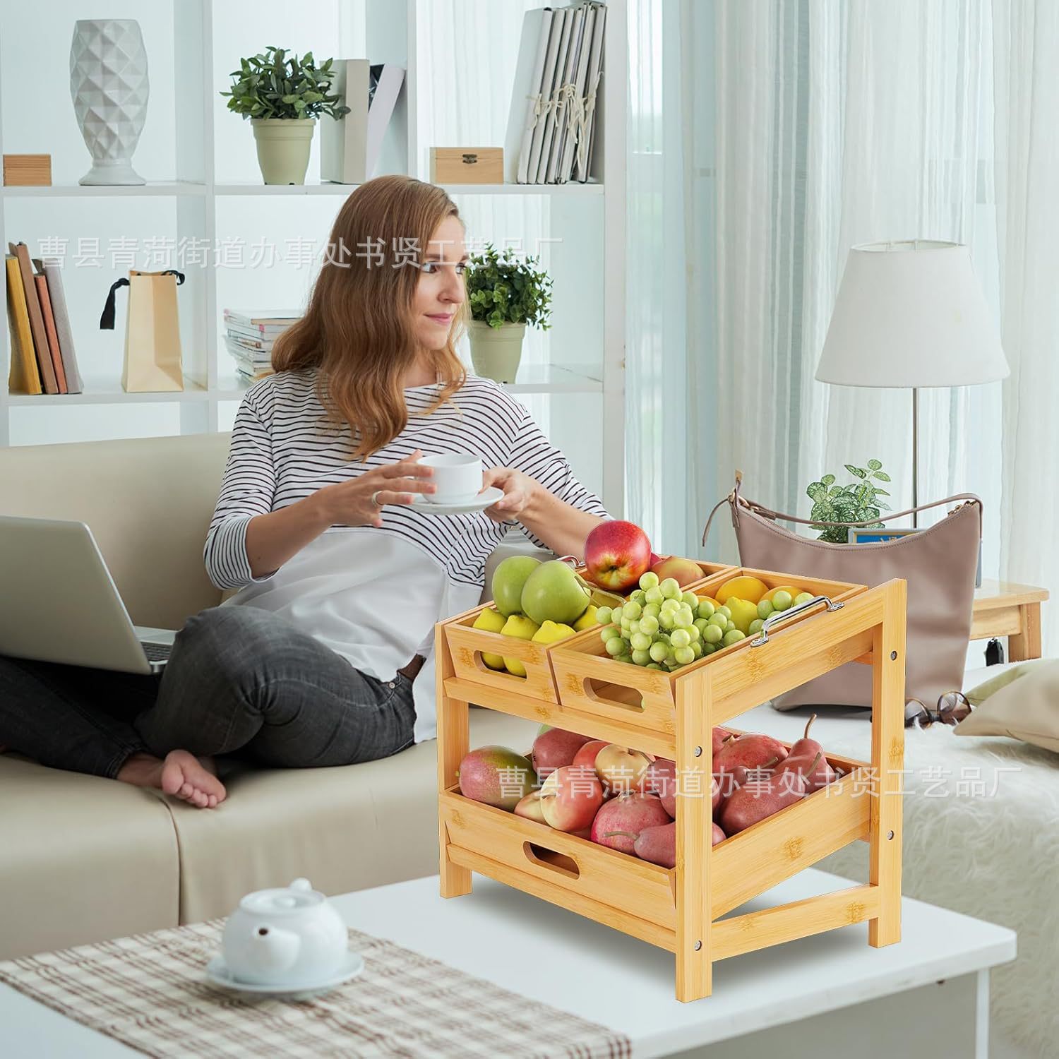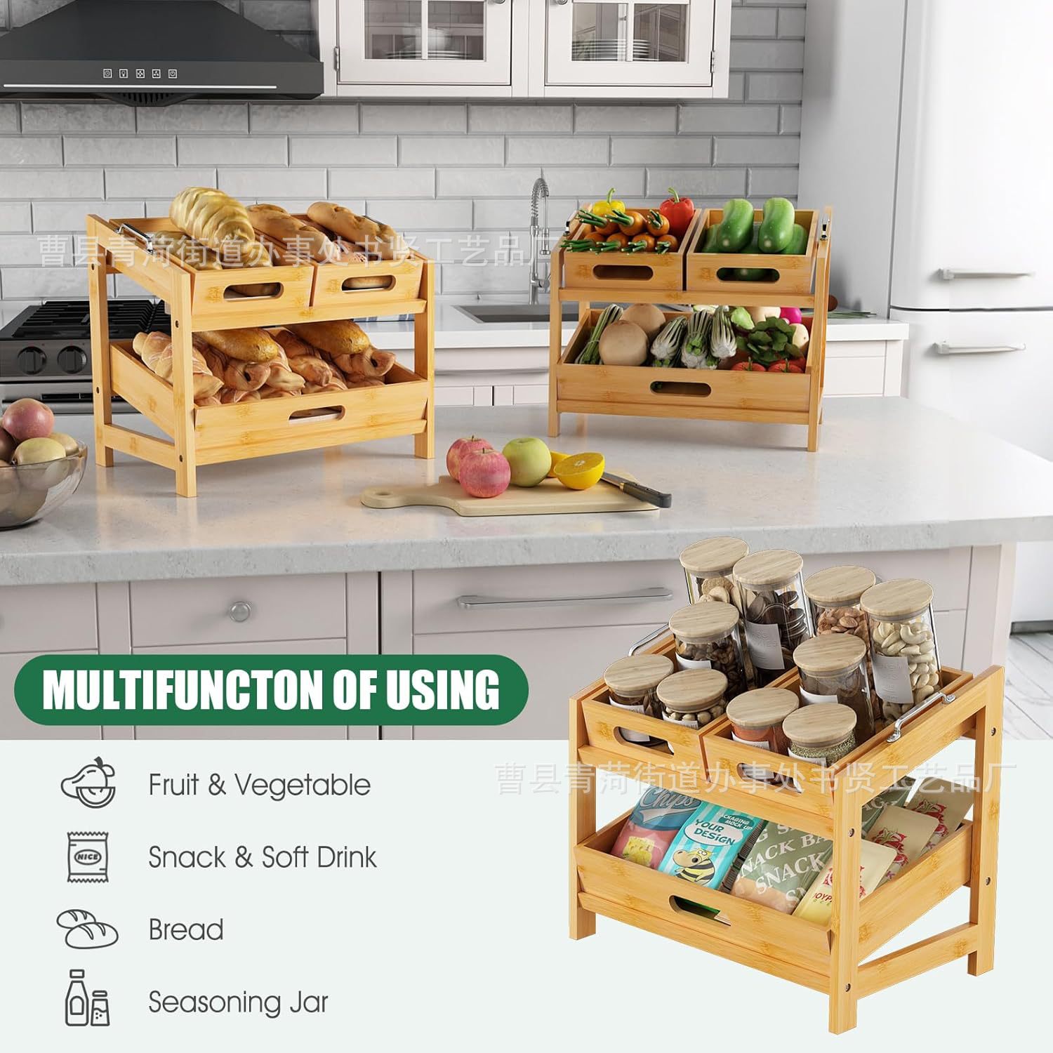 가정용 주방을위한 나무 쌓을 수있는 선반 다층 과일 및 야채 보관 나무 선반 단단한 나무 다기능 야채 바구니스토어 가기