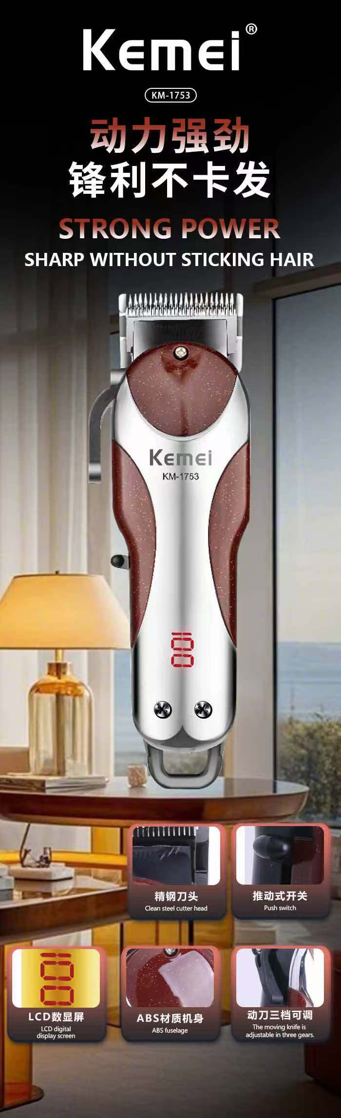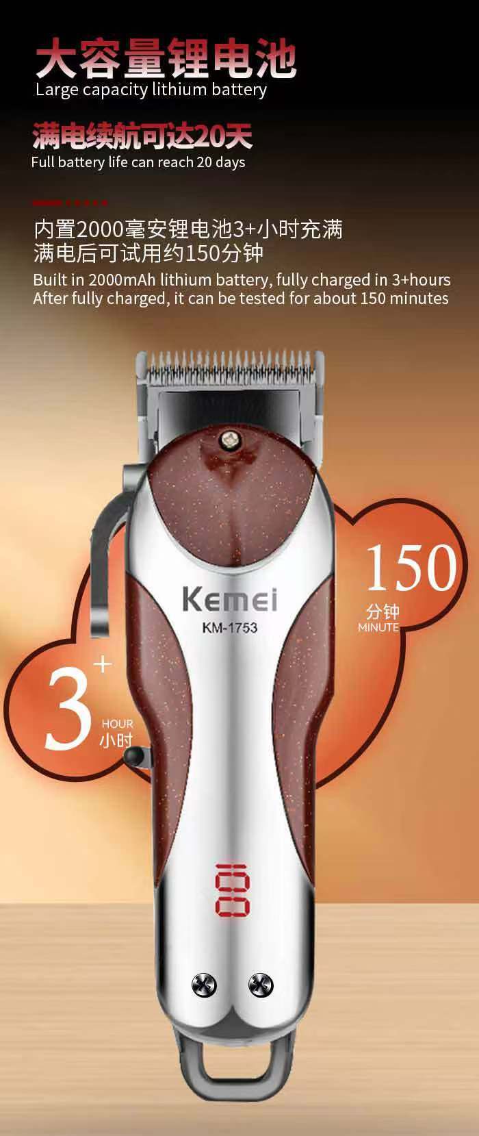 KM-1753 국경 간 가정용 전기 클리퍼 스마트 LCD 디지털 디스플레이 다기능 조절 전기 헤어 클리퍼 세트스토어 가기