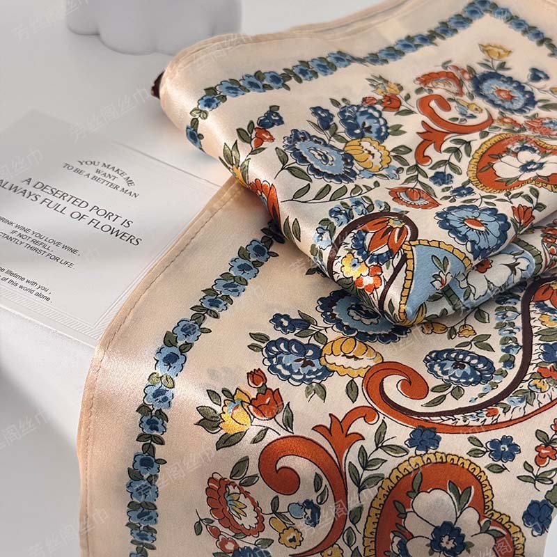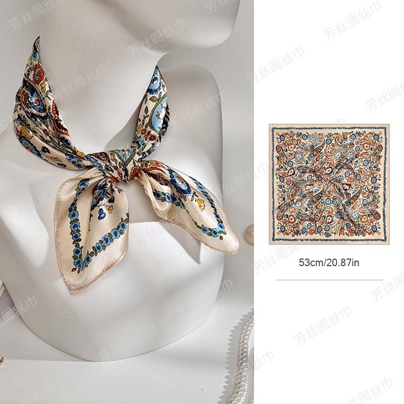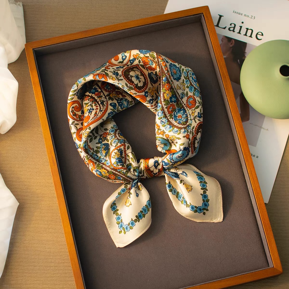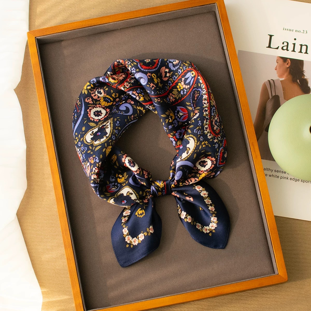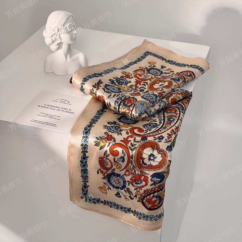 홍콩 스타일 페이즐리 53 플레인 크레이프 새틴 실크 스카프 여성 인기 모델 2025 새로운 스퀘어 스카프 목 보호대 실크 스카프 매칭