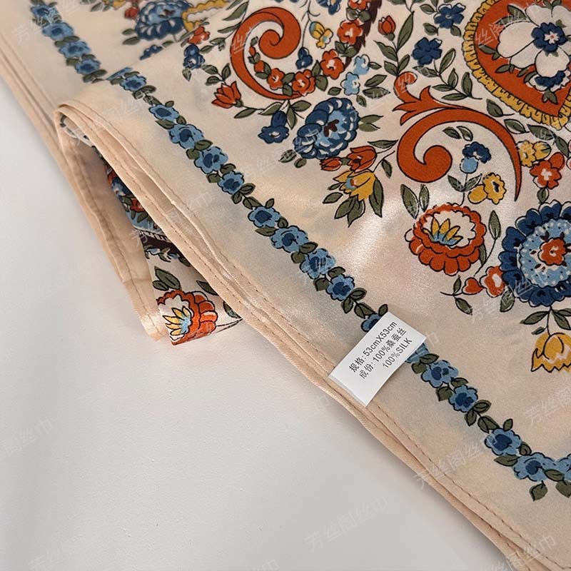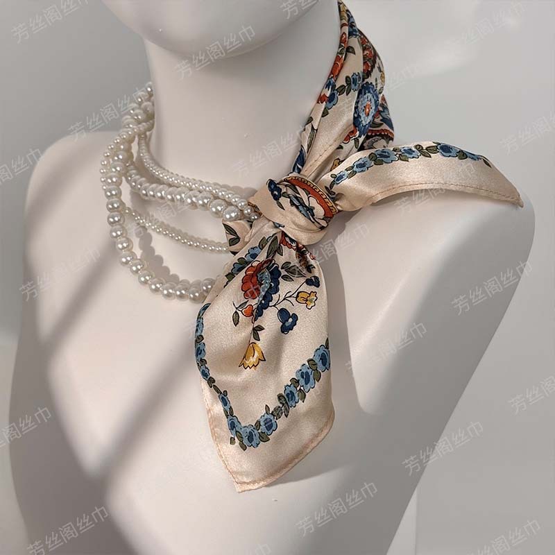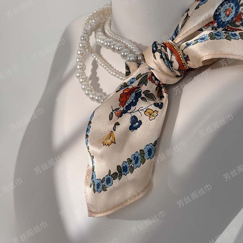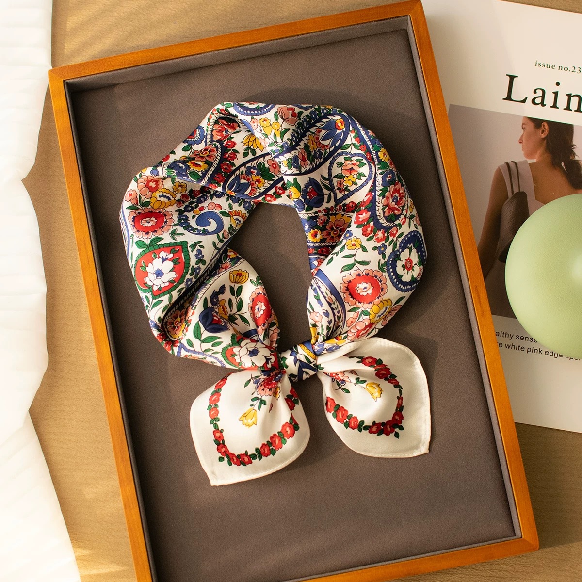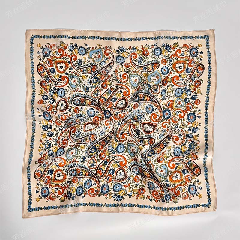 홍콩 스타일 페이즐리 53 플레인 크레이프 새틴 실크 스카프 여성 인기 모델 2025 새로운 스퀘어 스카프 목 보호대 실크 스카프 매칭