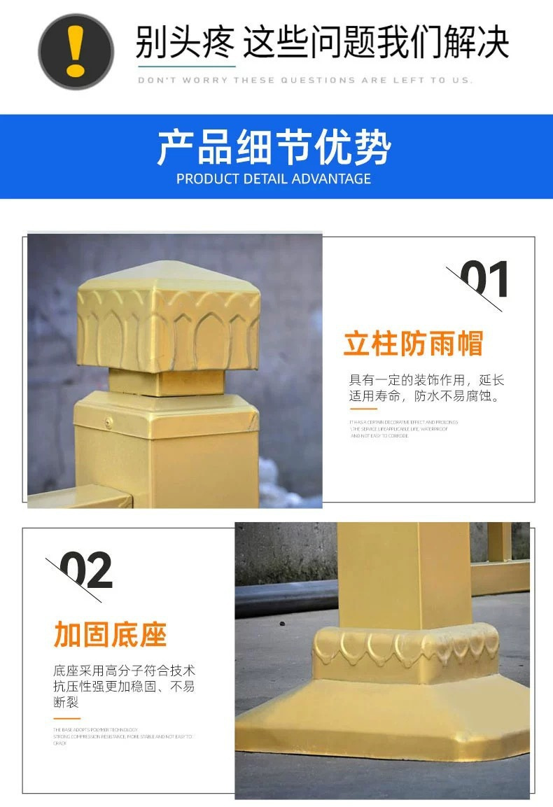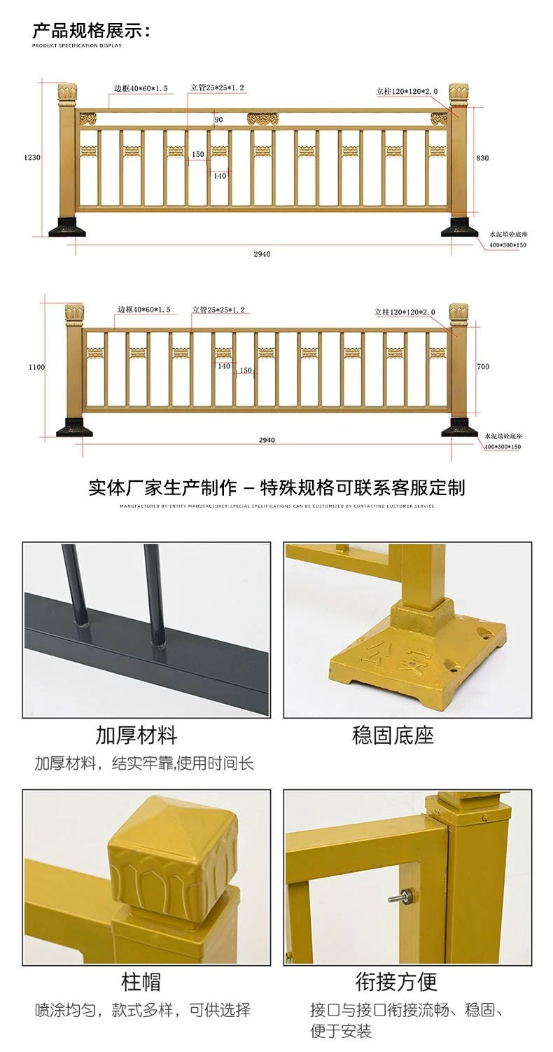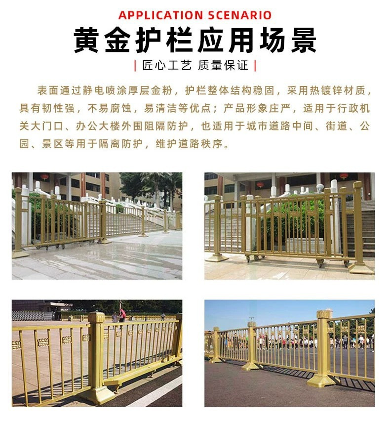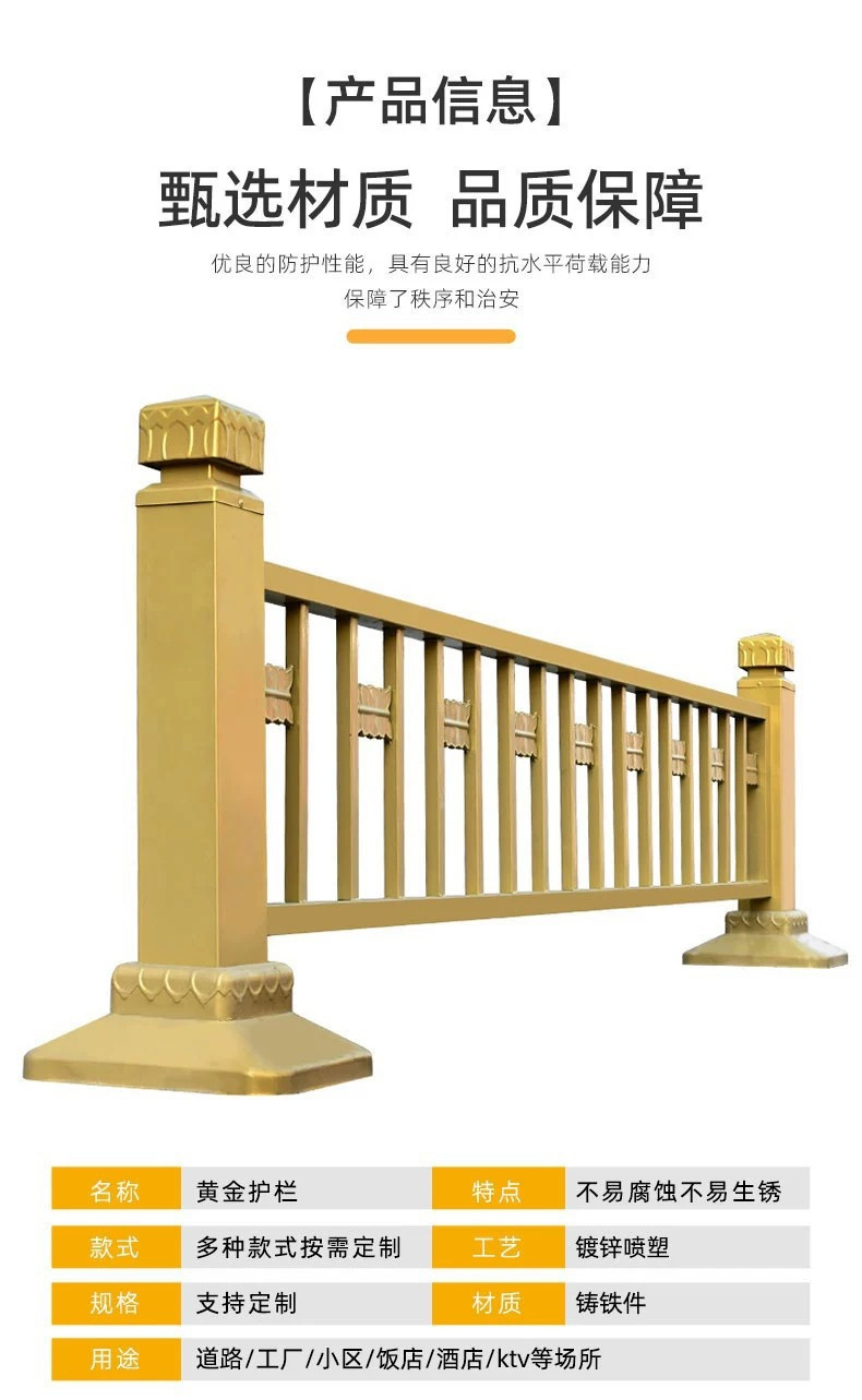 황금 난간 연꽃 조각 금색 시정 난간 도로 거리 사람들의 분할 격리 중앙 연꽃 시정