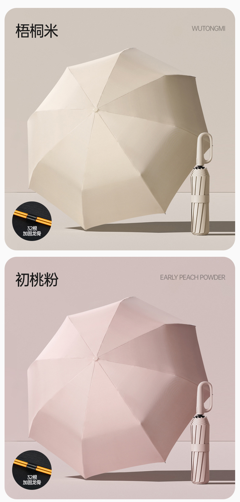 21inch 링 버클 8본 완전 자동 접이식 비 또는 샤인 대형 바람 방지 이중 자동차 차양 및 자외선 차단 우산 재고 있음