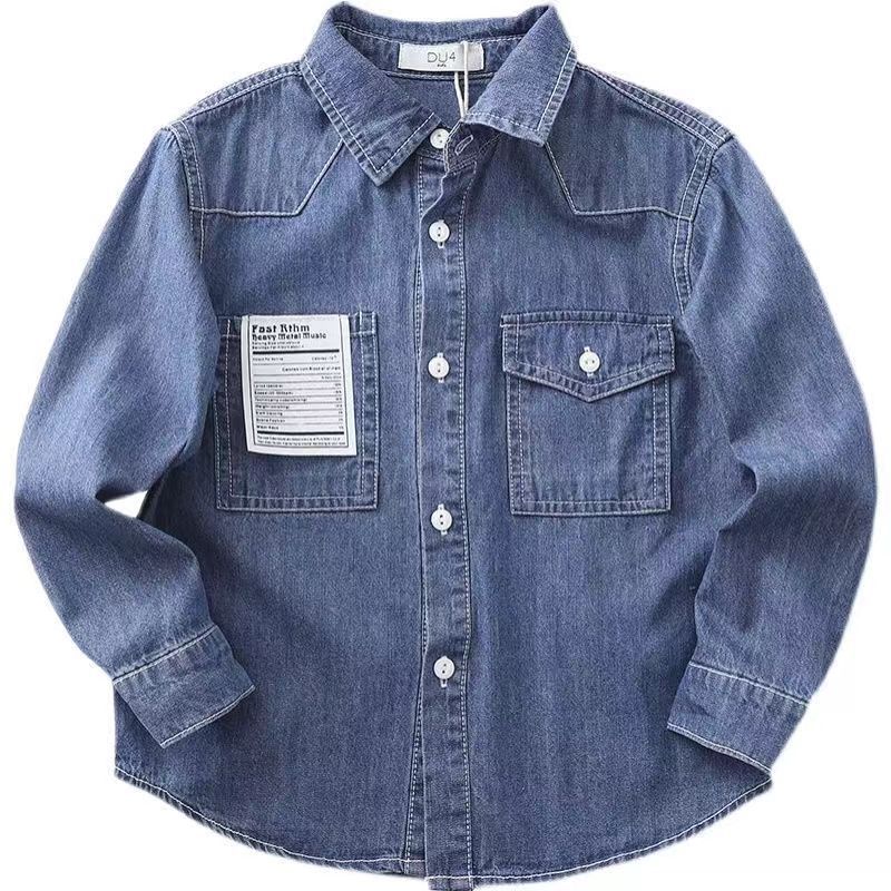 2024 새로운 가을 소년 데님 셔츠, 아동용 긴팔 캐주얼 재킷, 중대형 아동용 얇은 셔츠, 카디건, 트렌드