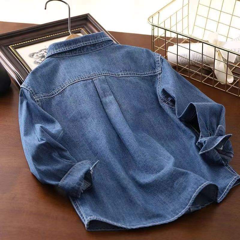 2024 새로운 가을 소년 데님 셔츠, 아동용 긴팔 캐주얼 재킷, 중대형 아동용 얇은 셔츠, 카디건, 트렌드스토어 가기