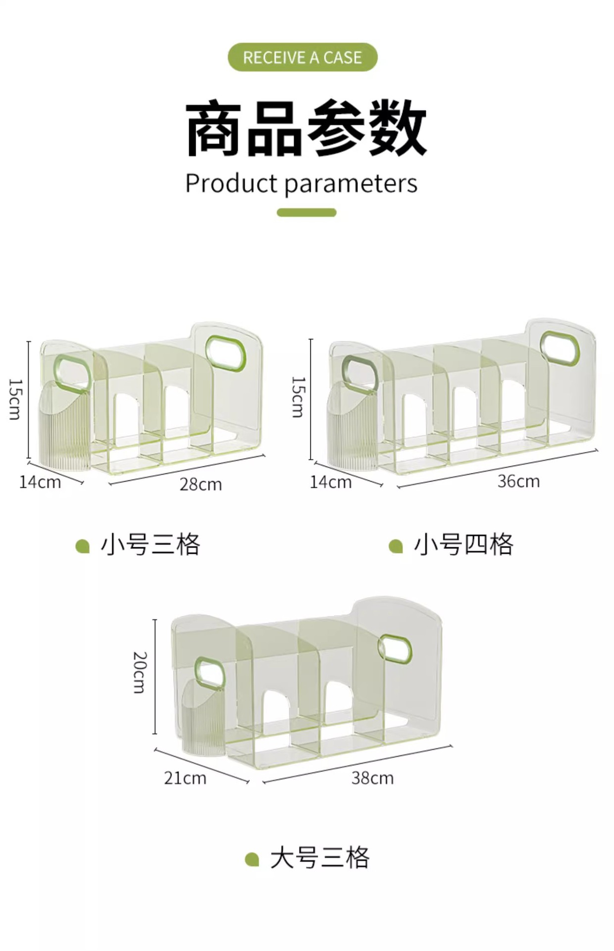 • 투명한 3개의 수납공간 [손잡이가 있는 두꺼운/매우 두꺼운 및 낙하 방지]