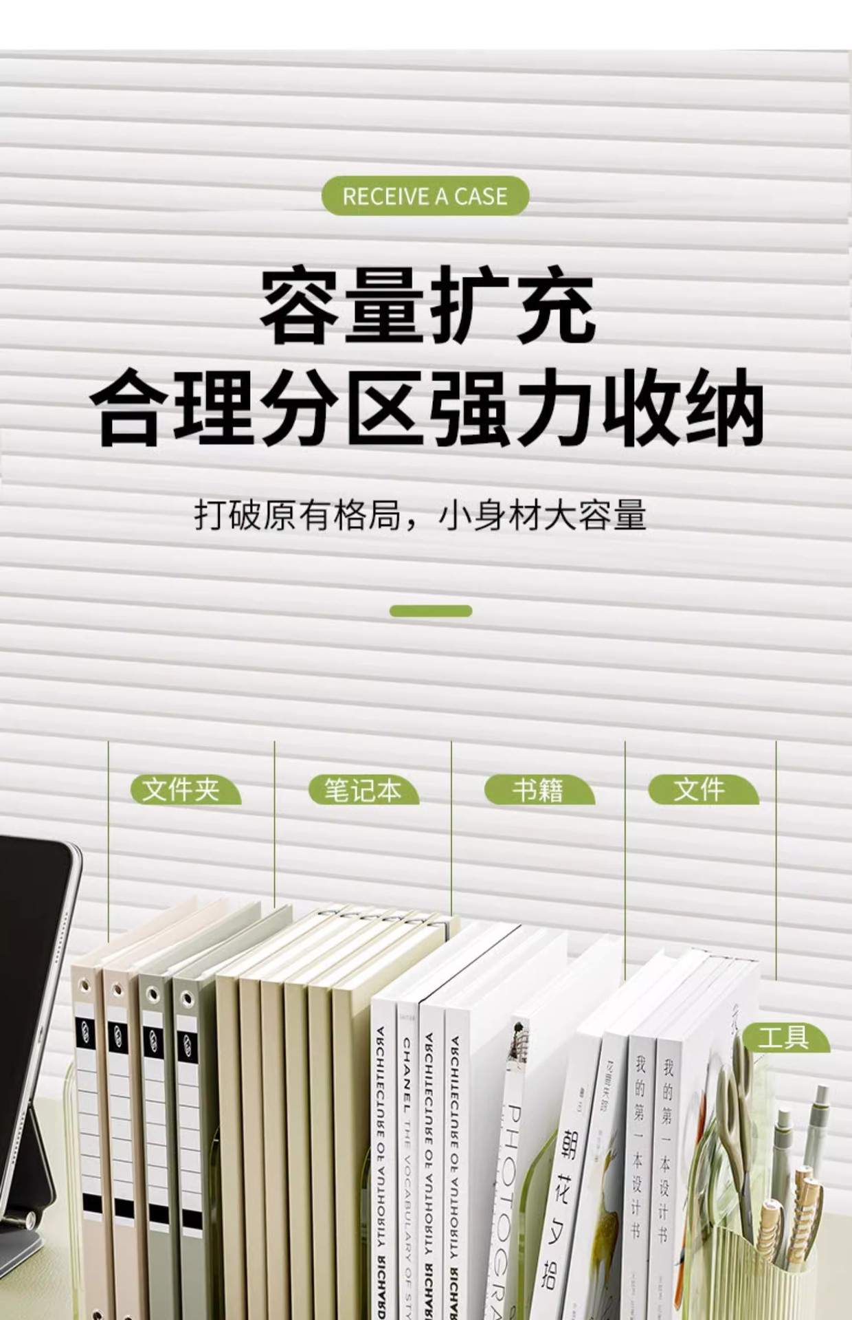 • 투명한 3개의 수납공간 + 투명한 걸이형 펜 홀더