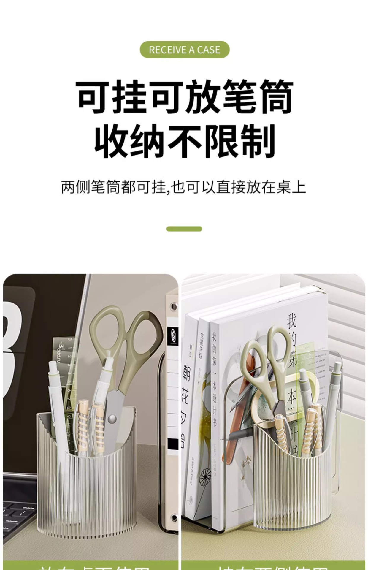 • 투명한 4개의 수납공간 + 투명한 걸이형 펜 홀더