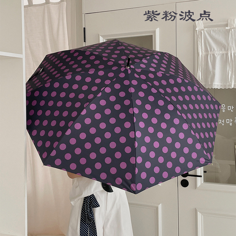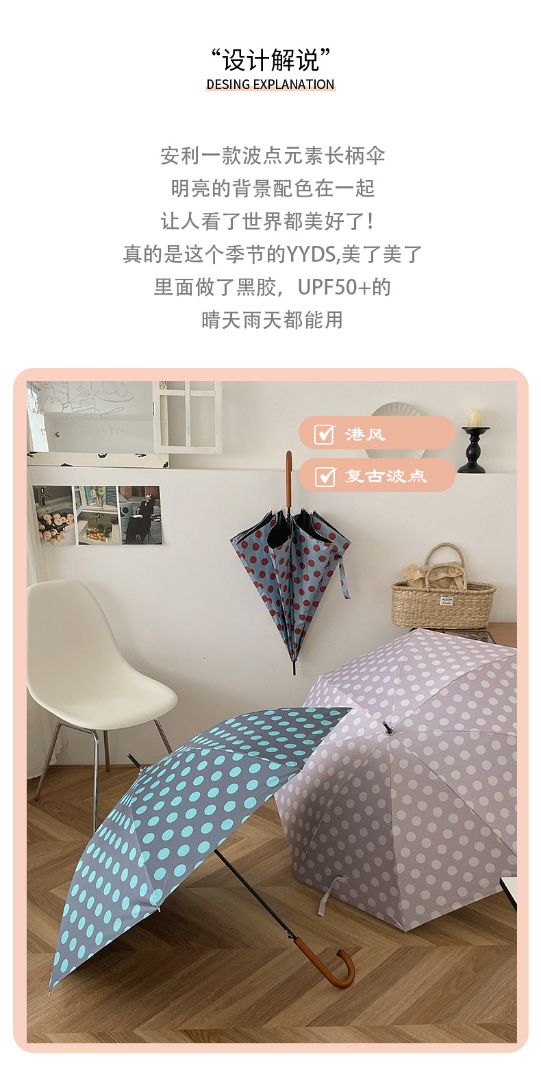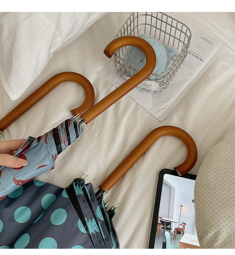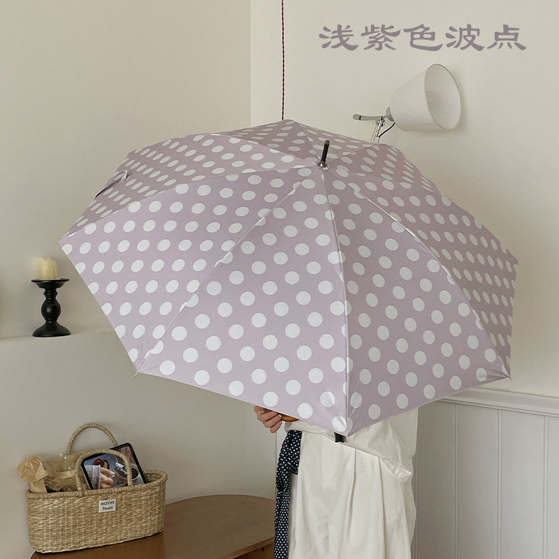 여성용 긴 손잡이 우산 레트로 대형 웨이브 포인트 스트레이트 로드 강화 방풍 및 방비 이중 사용 자외선 자동 햇빛 우산스토어 가기