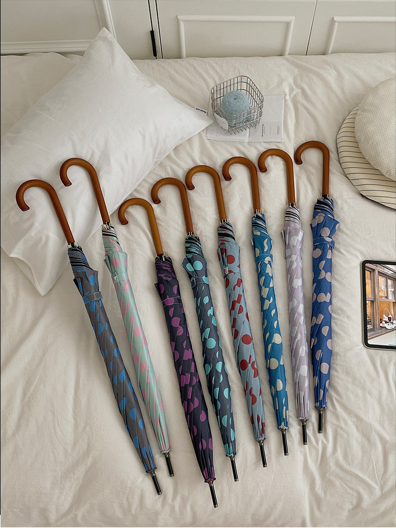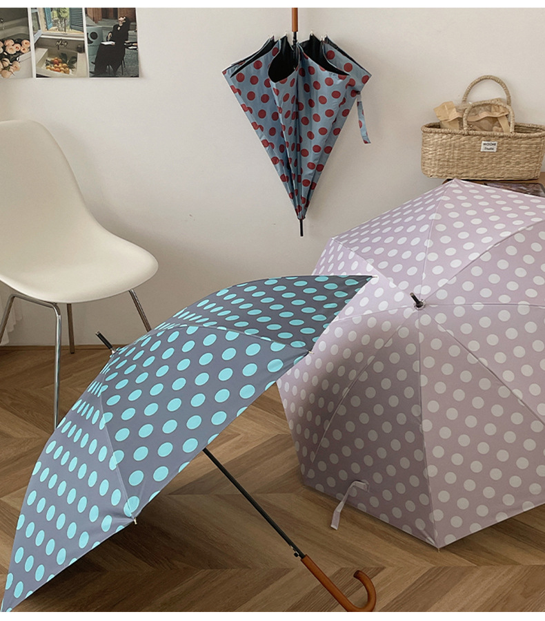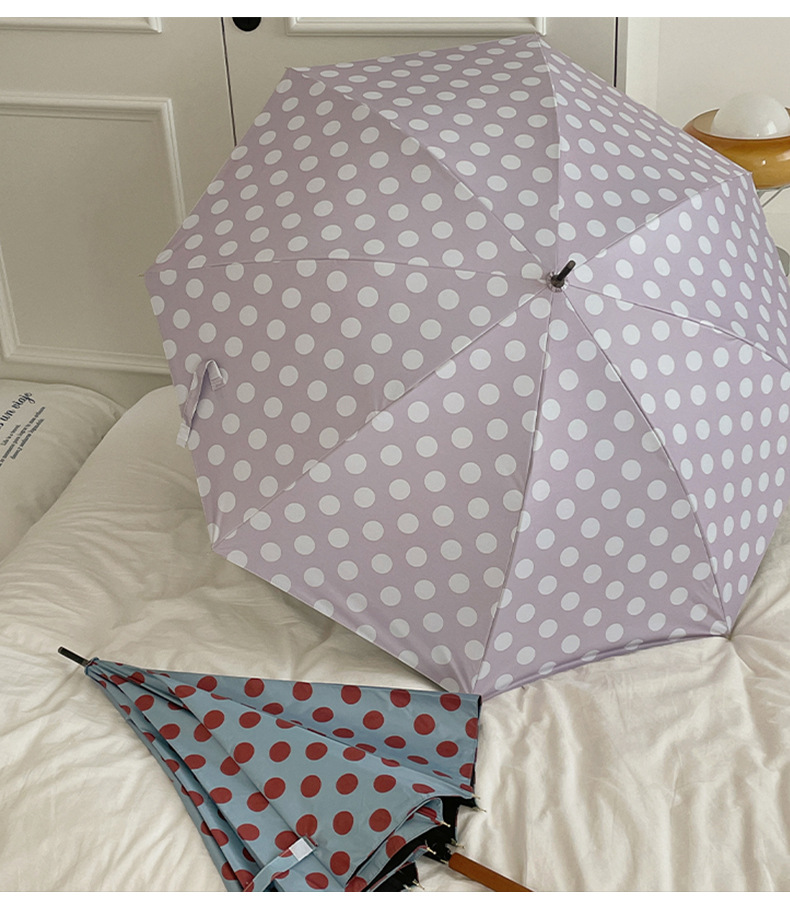 여성용 긴 손잡이 우산 레트로 대형 웨이브 포인트 스트레이트 로드 강화 방풍 및 방비 이중 사용 자외선 자동 햇빛 우산