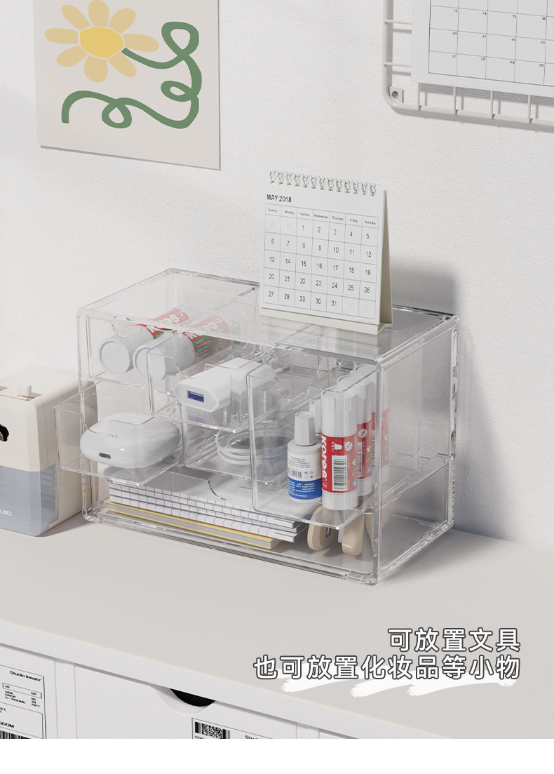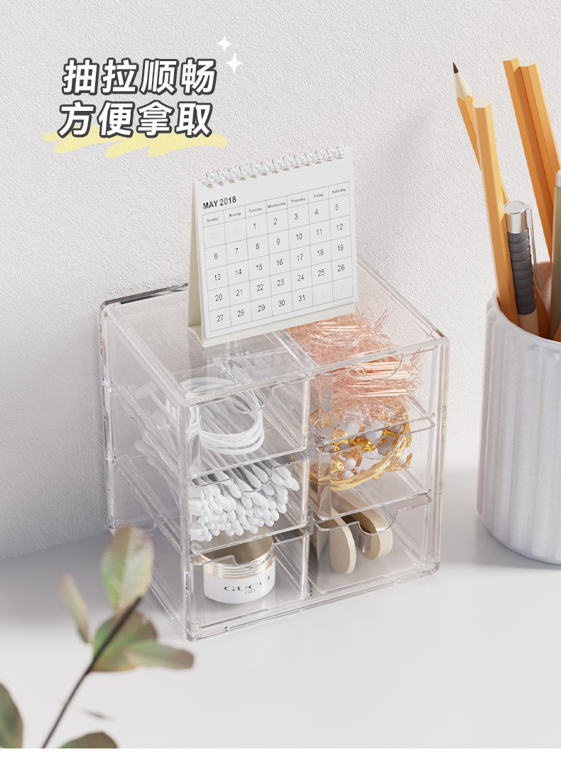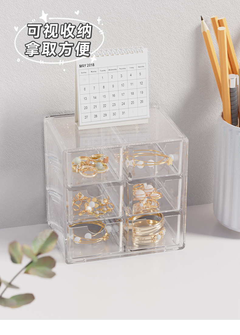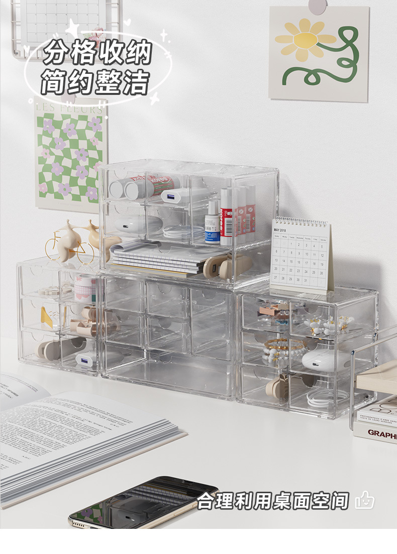 Ins 스타일 한국 소녀 하트 데스크탑 6각형 그리드 핸드북 투명 서랍 스타일 보관 상자 학생 책상 정리 상자스토어 가기