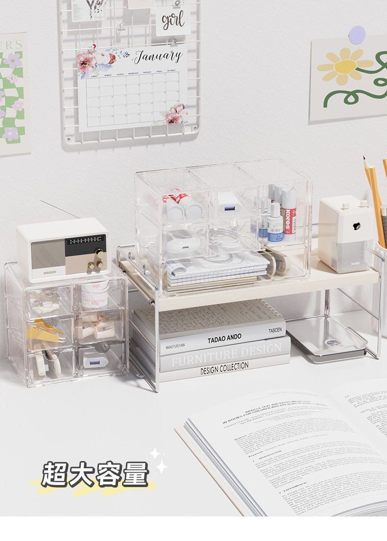 Ins 스타일 한국 소녀 하트 데스크탑 6각형 그리드 핸드북 투명 서랍 스타일 보관 상자 학생 책상 정리 상자