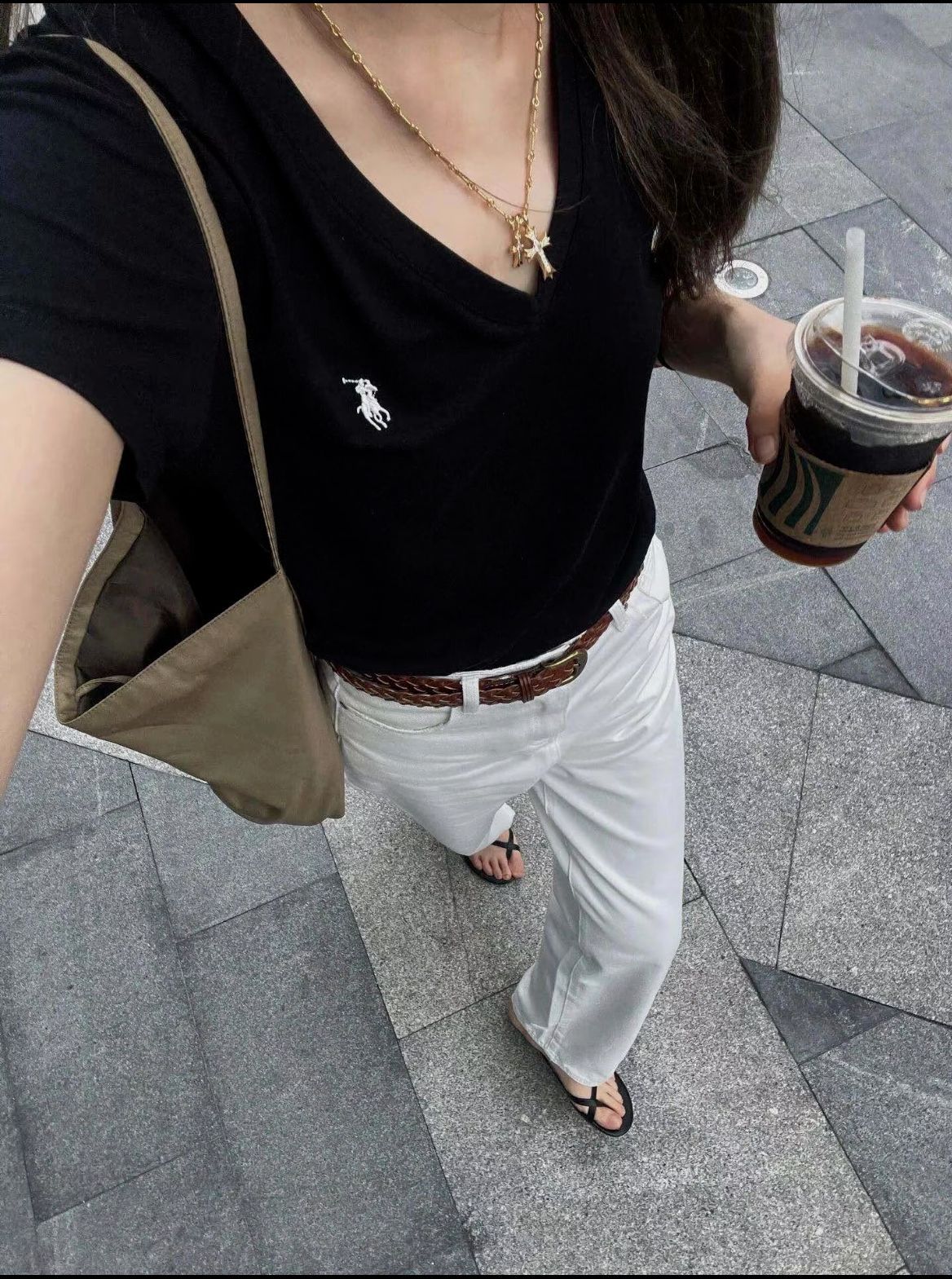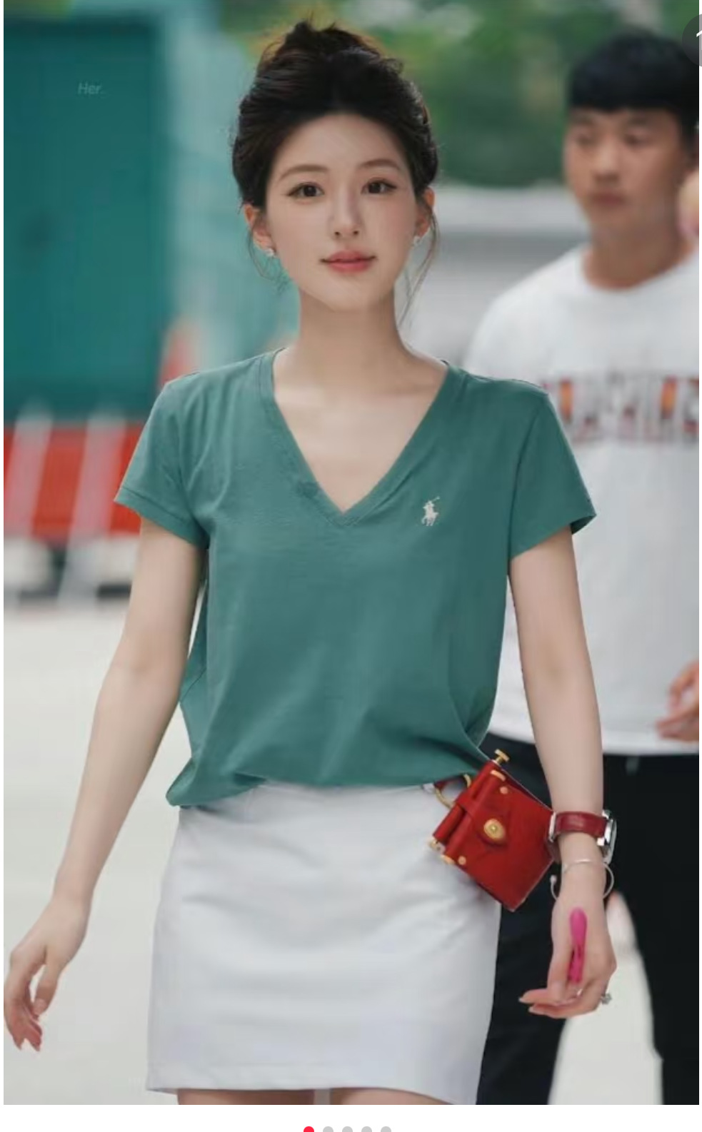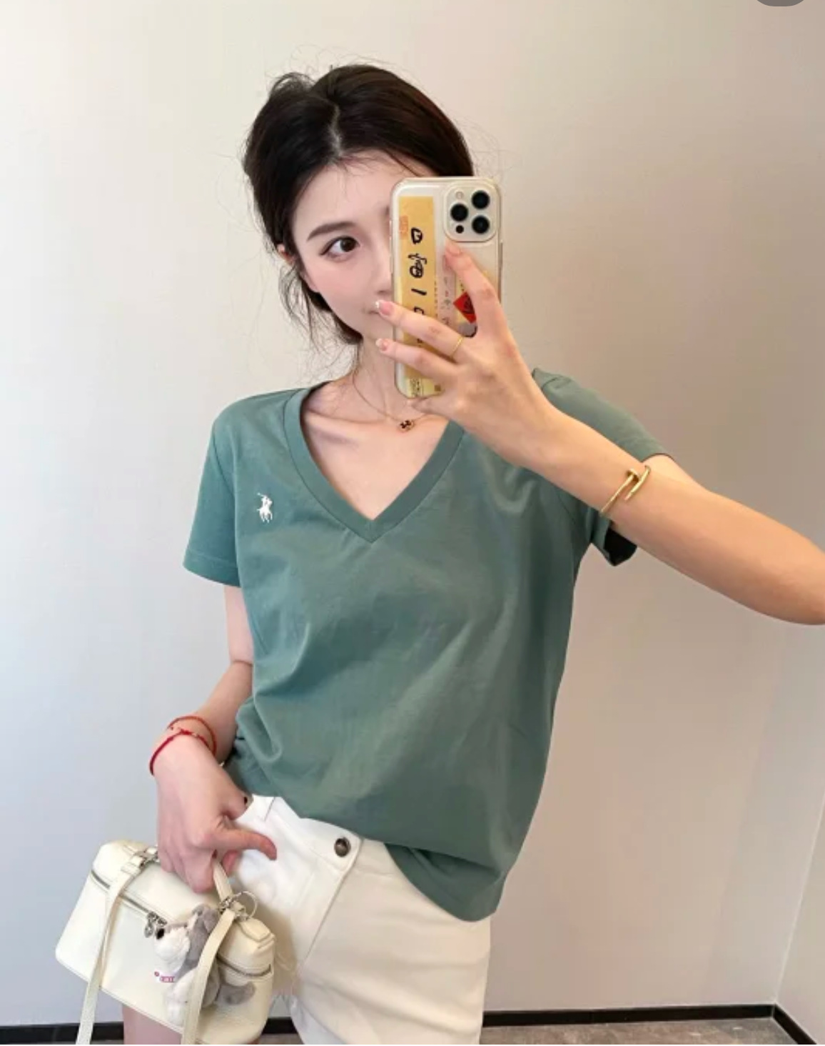 대외 무역 싱글 스윕 싱글 RL 라프 여성 클래식 포니 마크 V 넥 심플 패션 올 매치 티셔츠 올드 머니 스타일스토어 가기