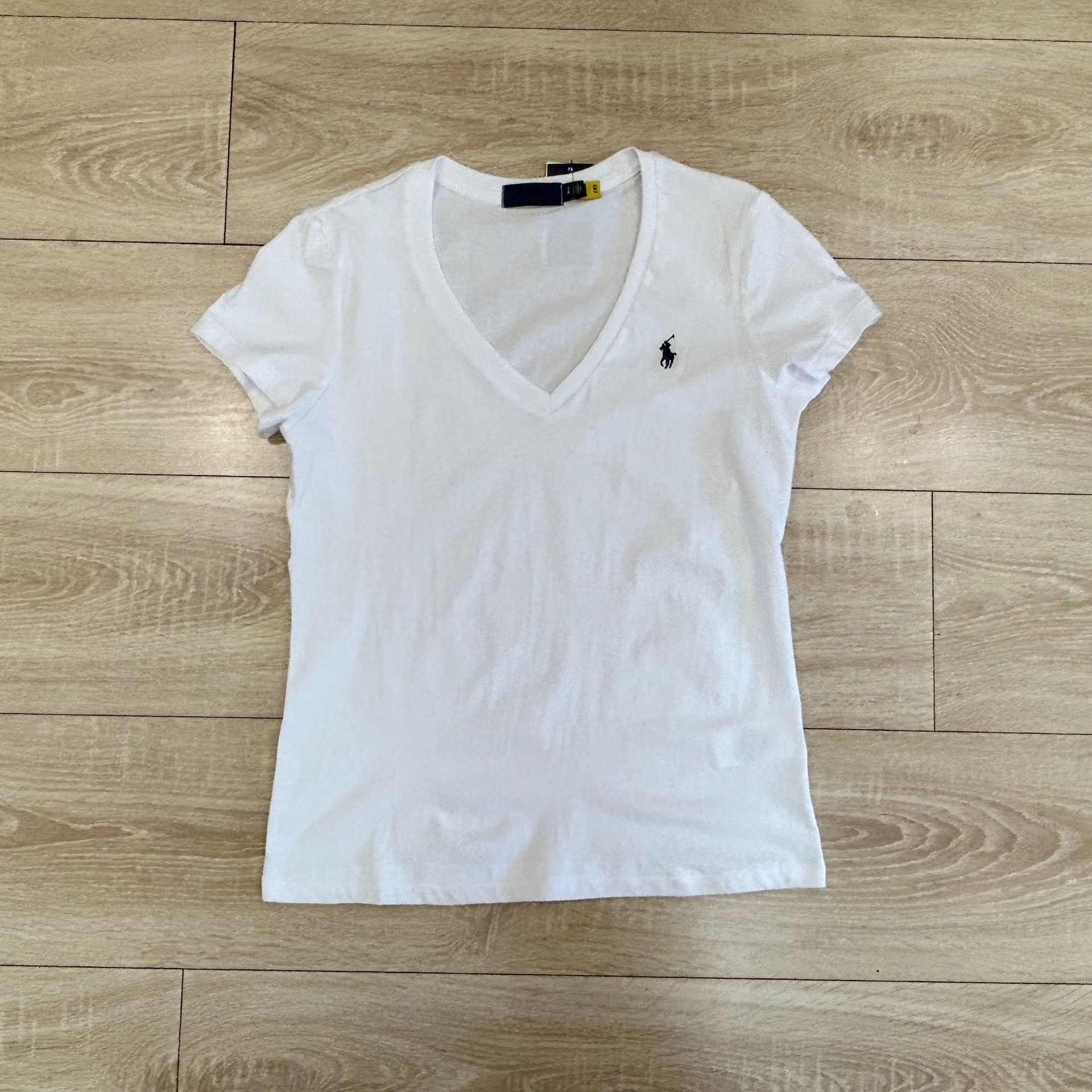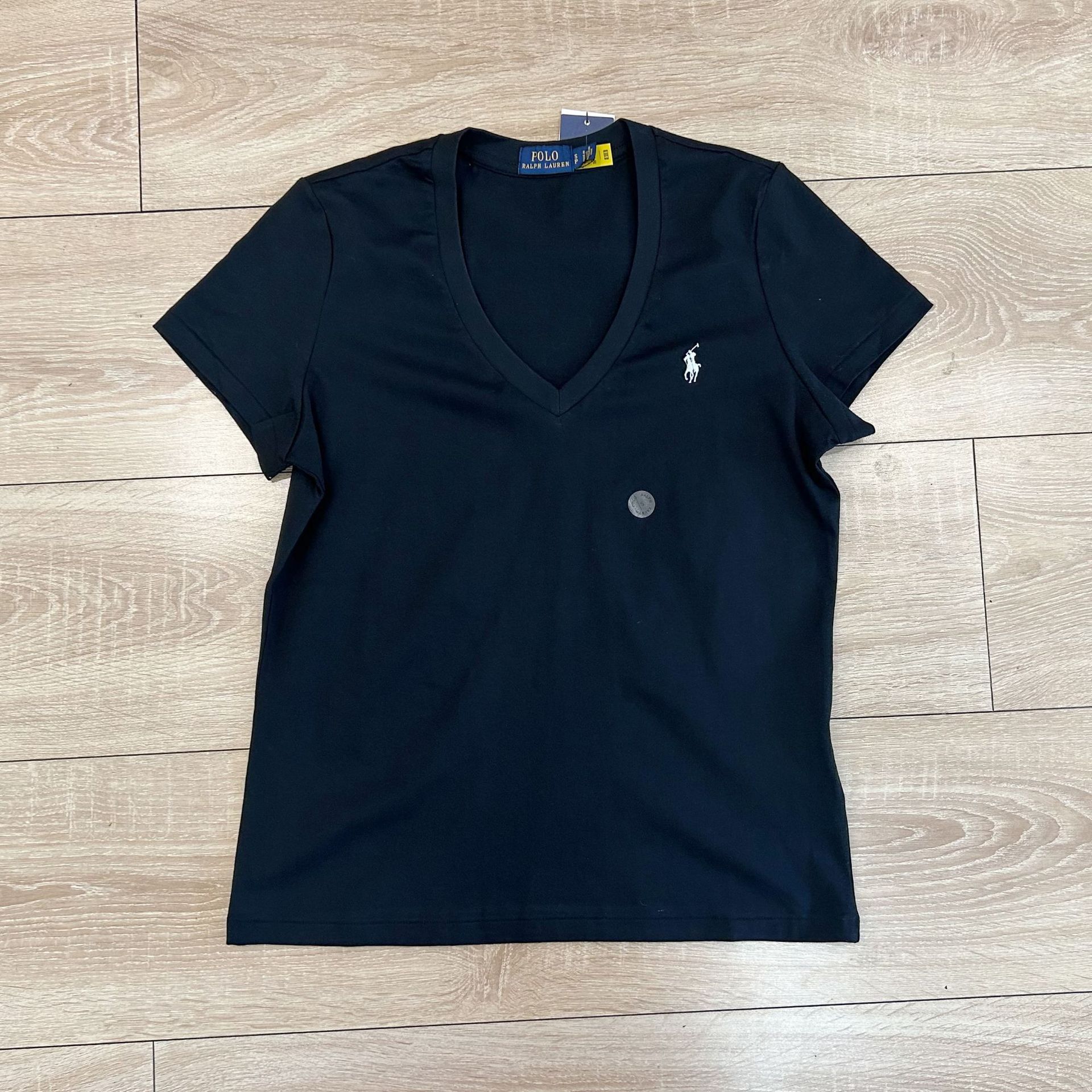 대외 무역 싱글 스윕 싱글 RL 라프 여성 클래식 포니 마크 V 넥 심플 패션 올 매치 티셔츠 올드 머니 스타일