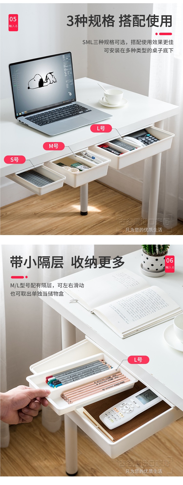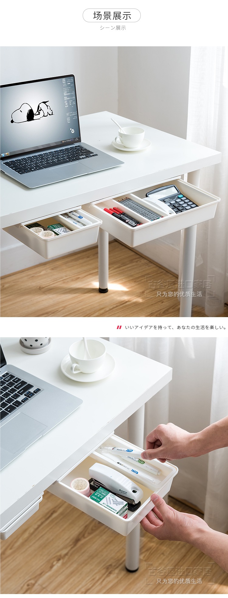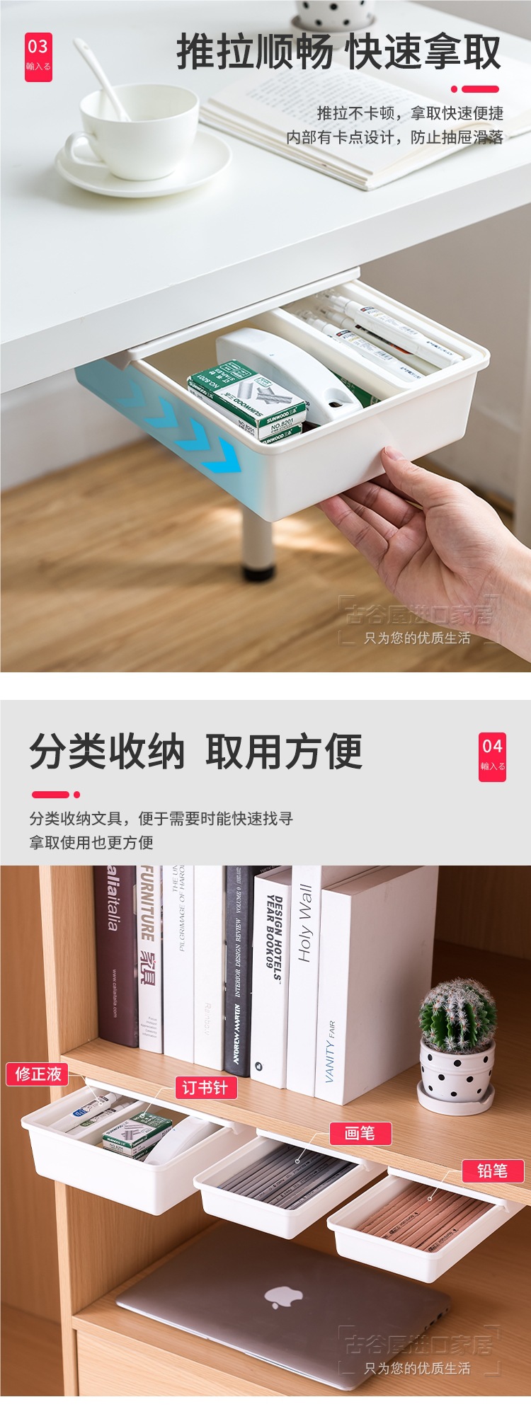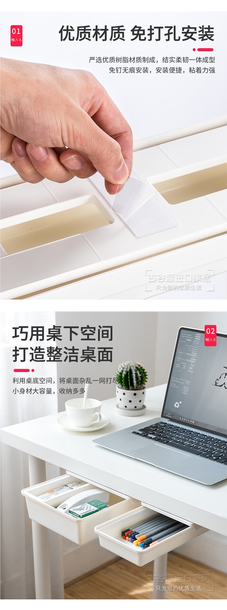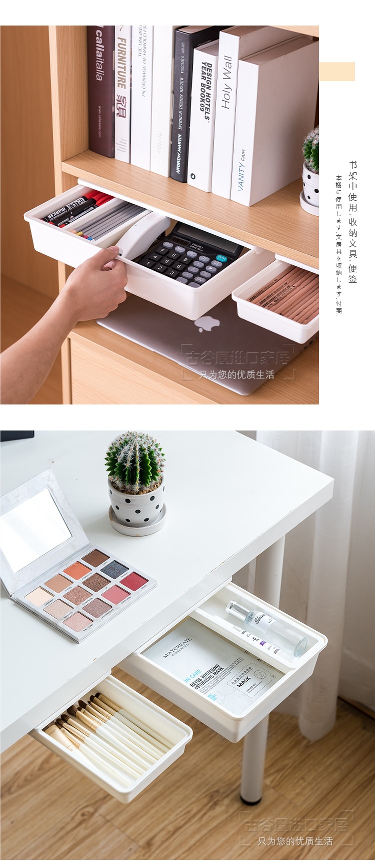 책상 밑 수납함, 데스크탑 서랍형 보이지 않는 정리함, 사무실 책상 밑 펀치 없는 수납함