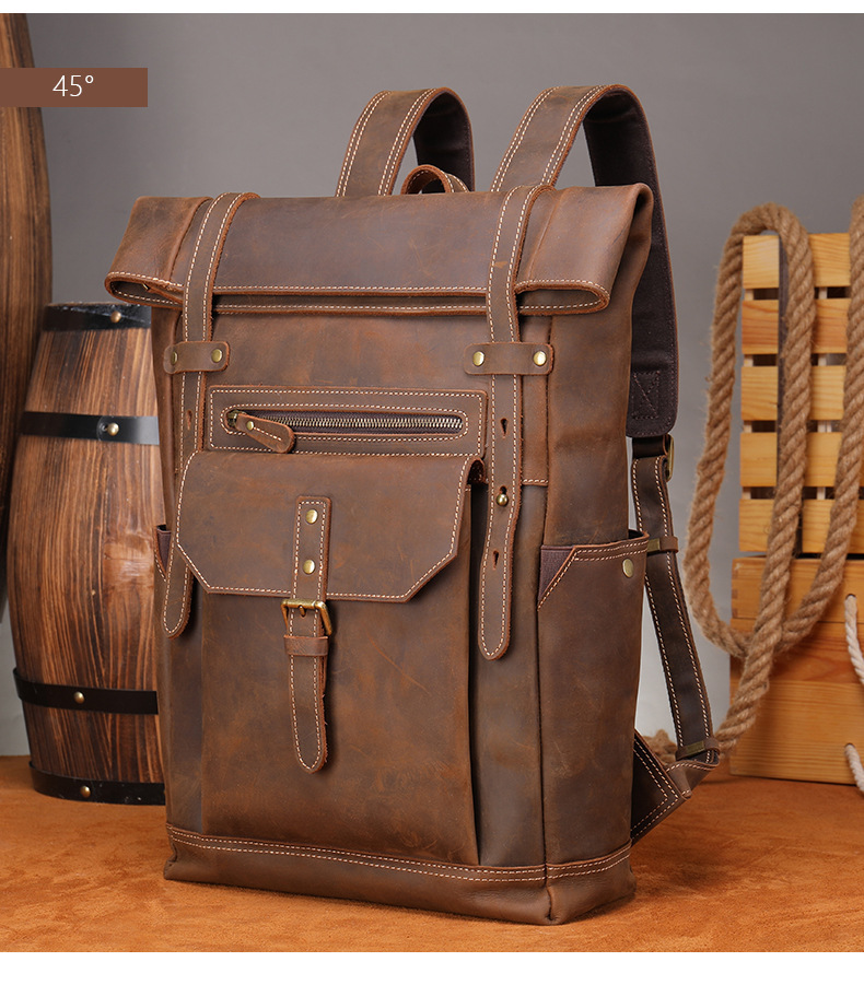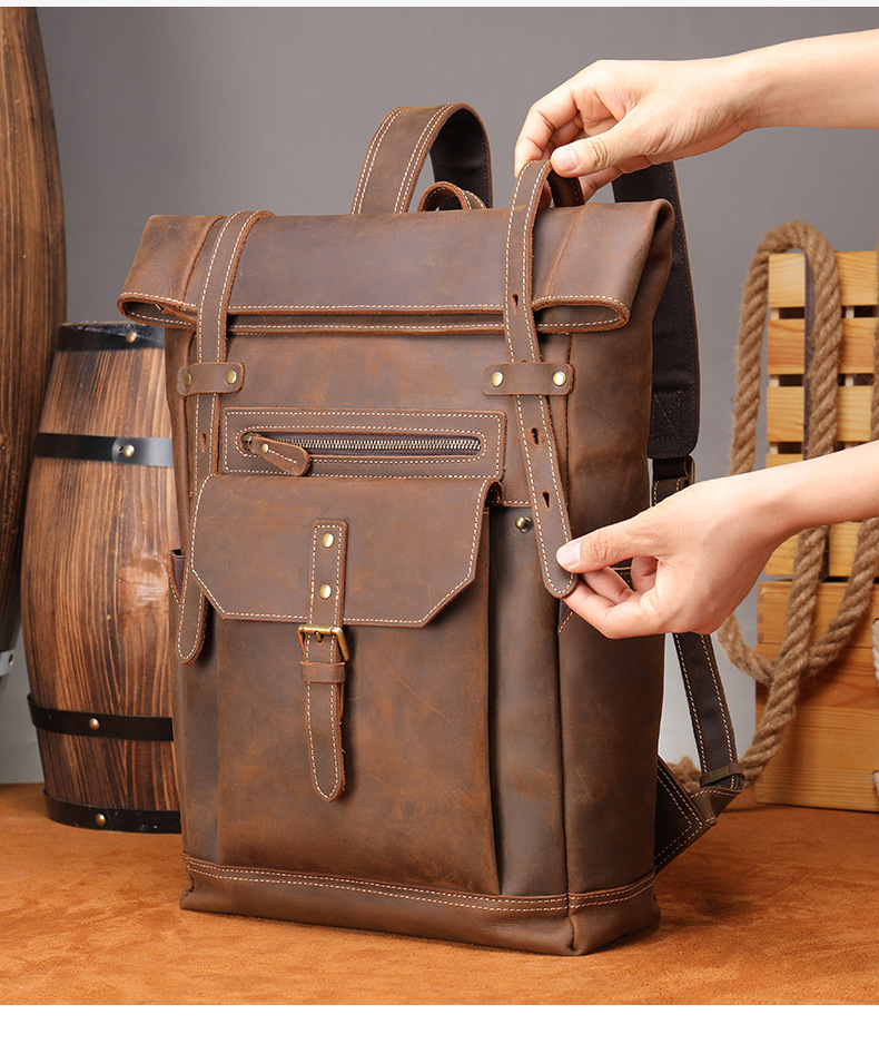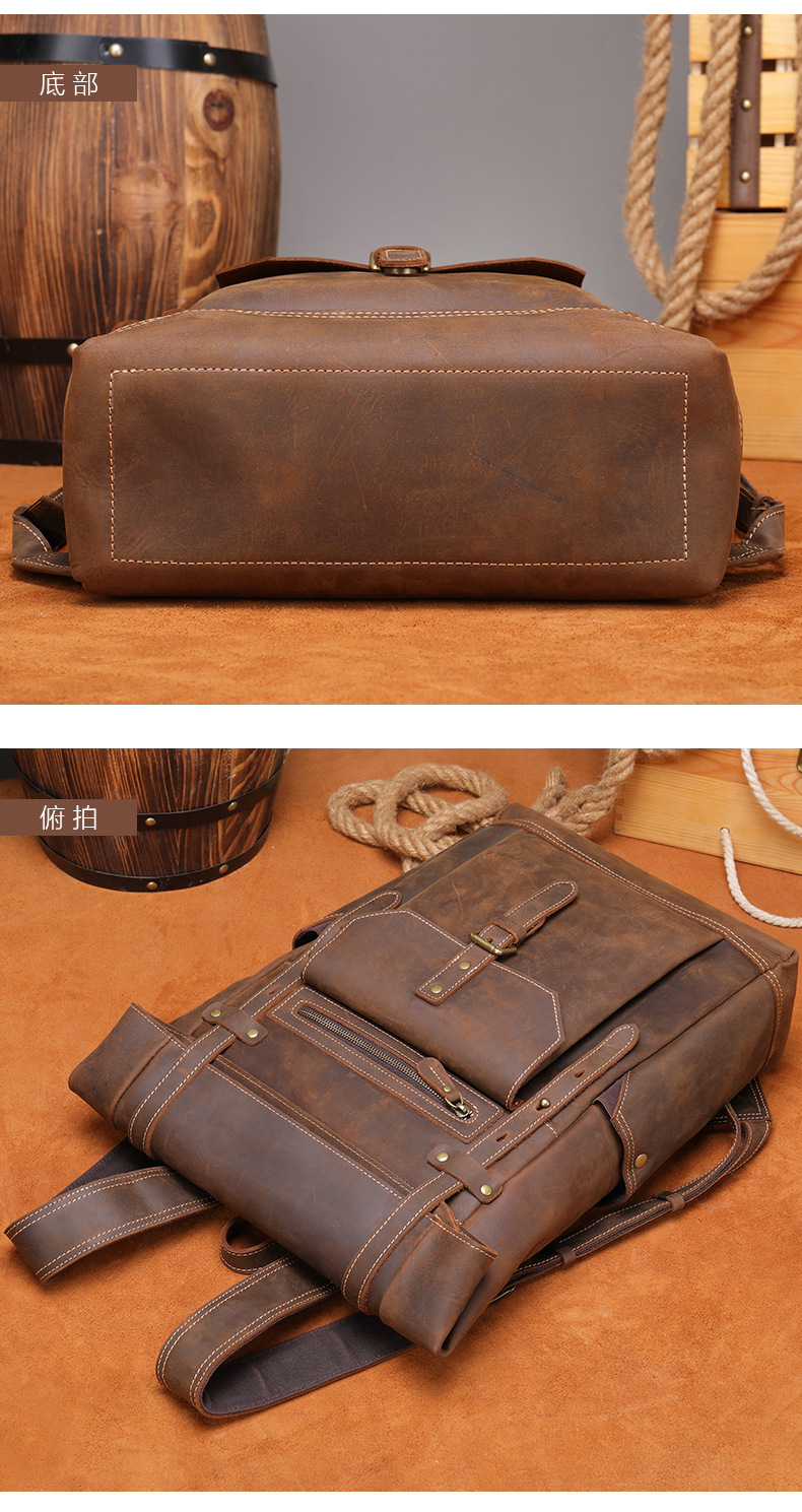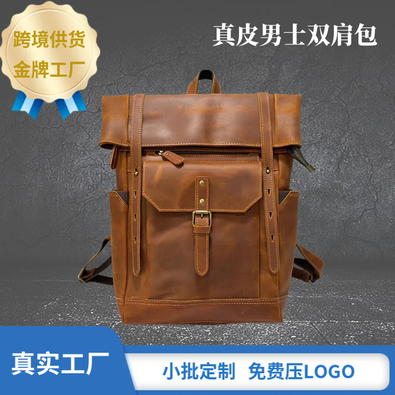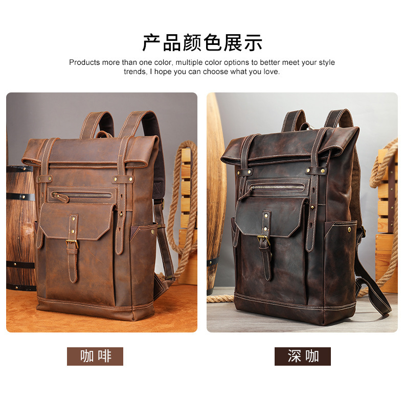 맞춤형 크레이지 호스 가죽 백팩 남성용 천연 가죽 백팩 레트로 대용량 아웃도어 여행 등산용 확장 가능 경량 백팩스토어 가기