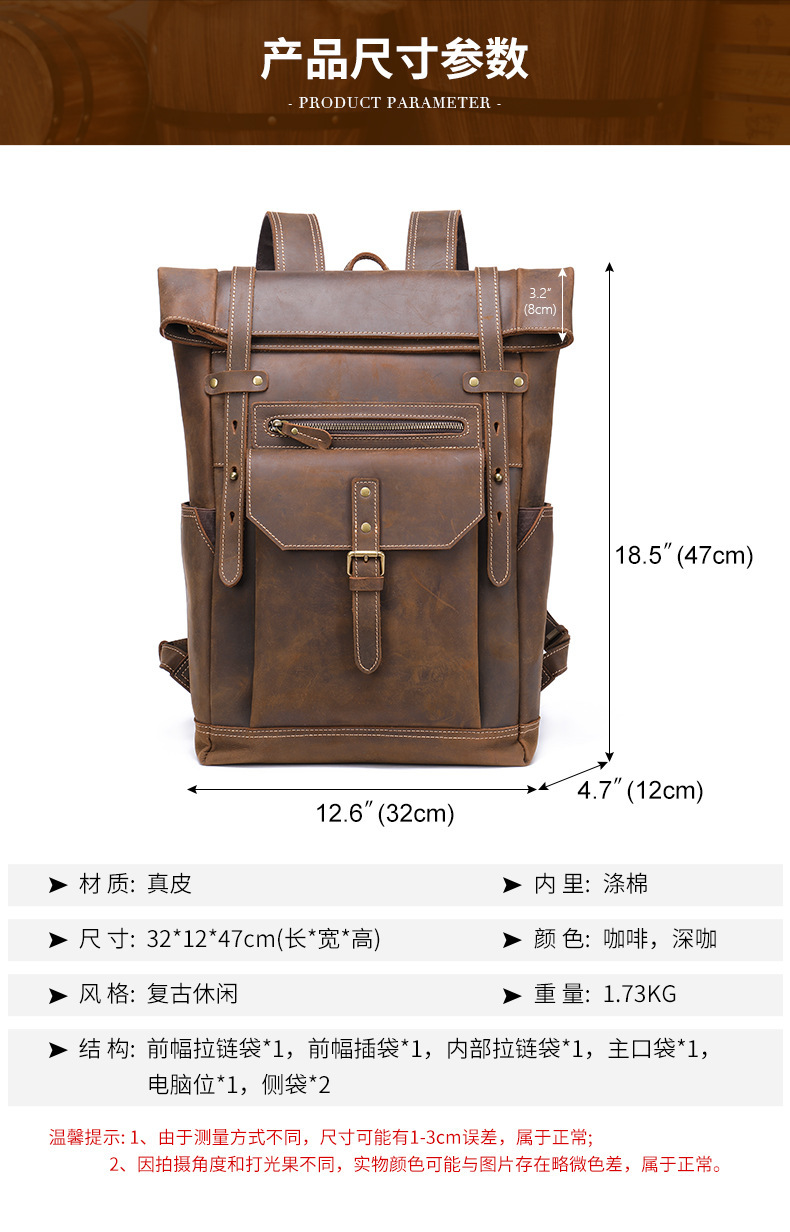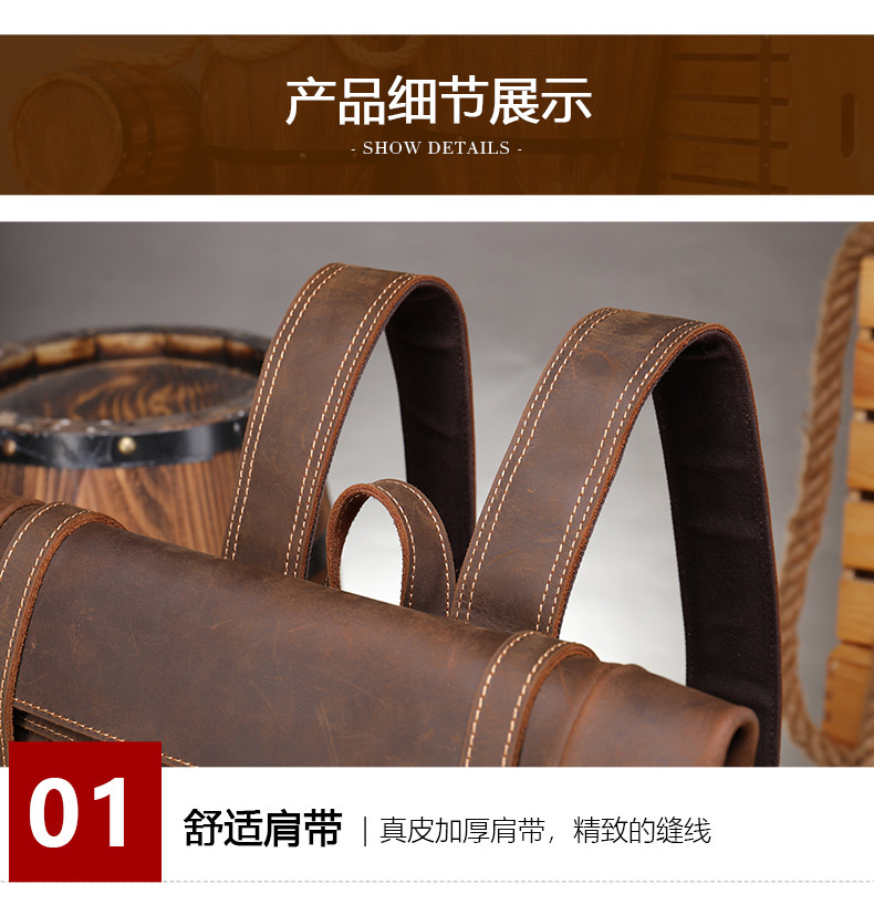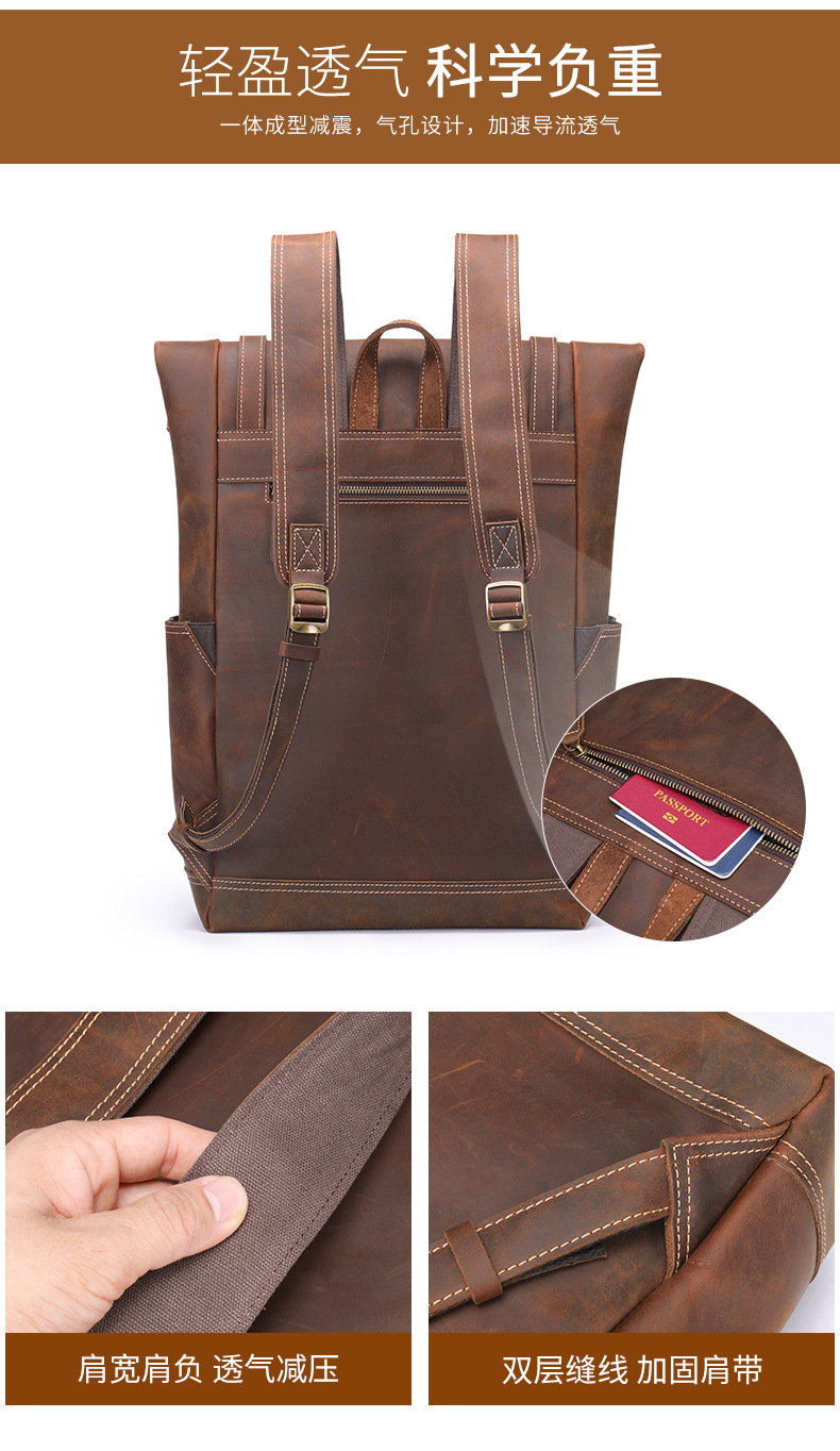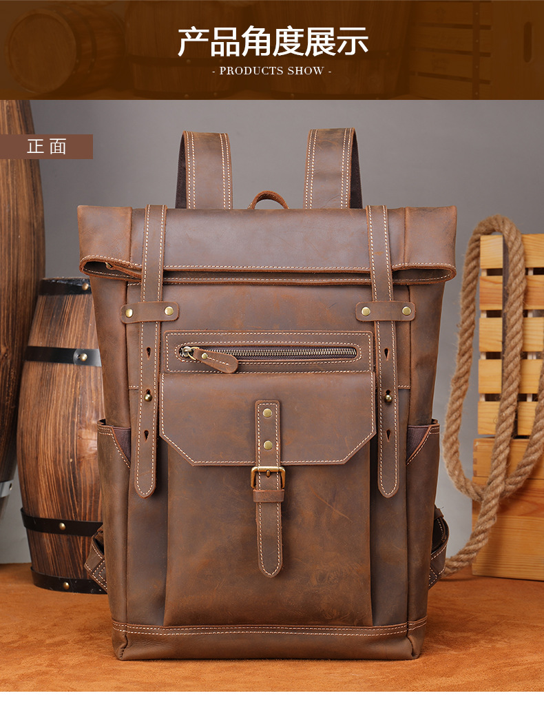 맞춤형 크레이지 호스 가죽 백팩 남성용 천연 가죽 백팩 레트로 대용량 아웃도어 여행 등산용 확장 가능 경량 백팩스토어 가기