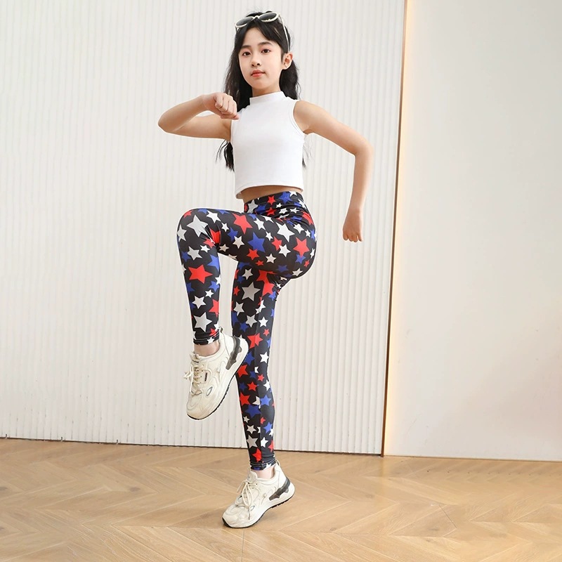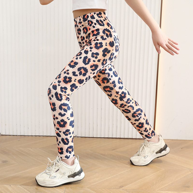 여자 밀크 실크 레깅스 봄과 여름 얇은 아기 바지 어린이 탄성 슬림 밀크 실크 프린트 바지 크로스 보더