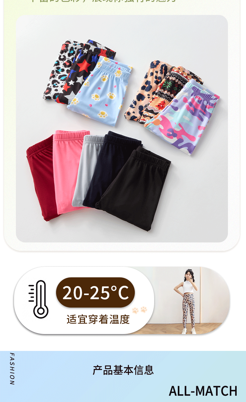 여자 밀크 실크 레깅스 봄과 여름 얇은 아기 바지 어린이 탄성 슬림 밀크 실크 프린트 바지 크로스 보더스토어 가기