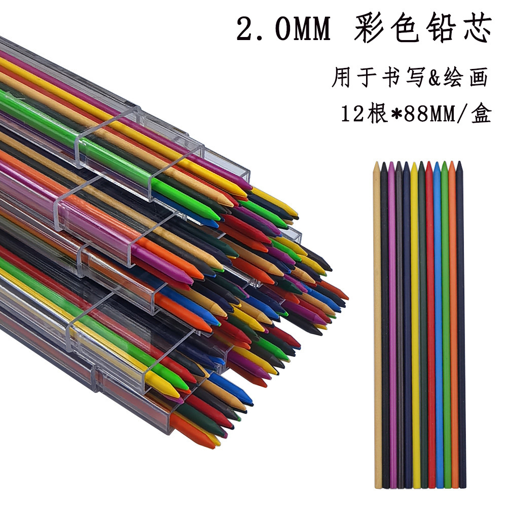 2.0mm 다채로운 리드 자동 연필 상자 리필 12 개 리필 교체 쓰기 문구 선물 도매