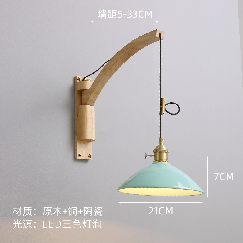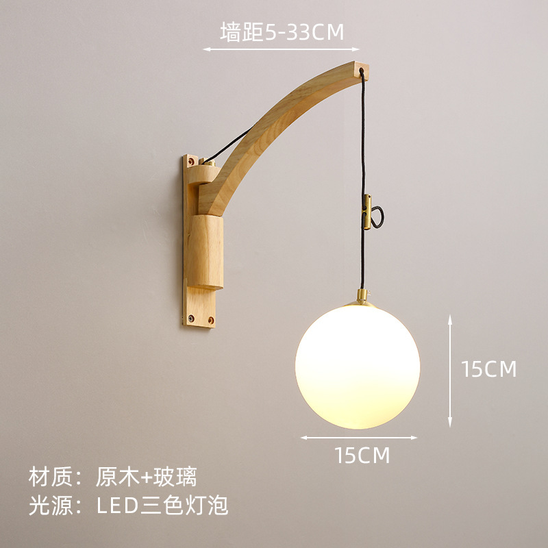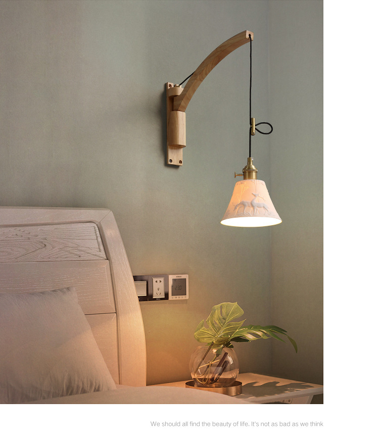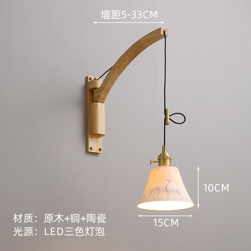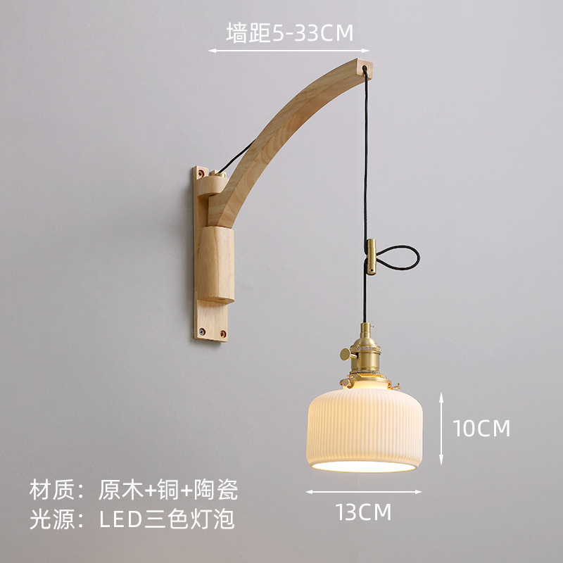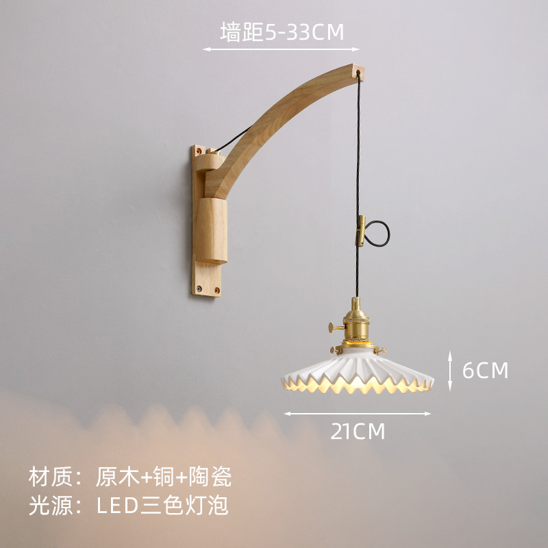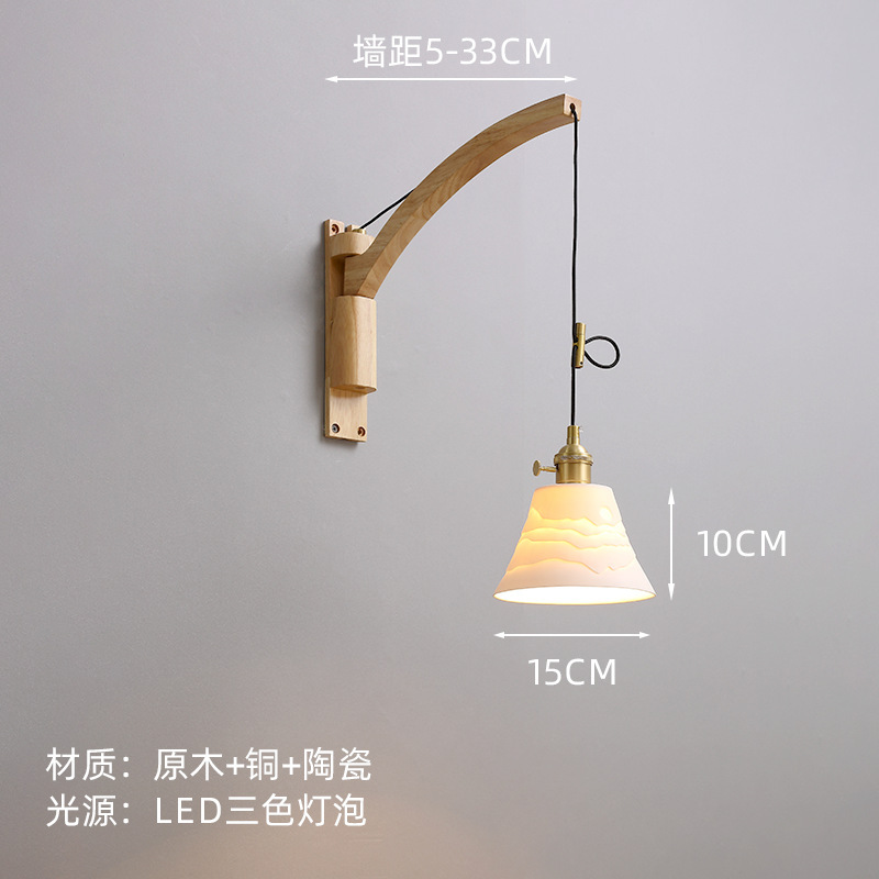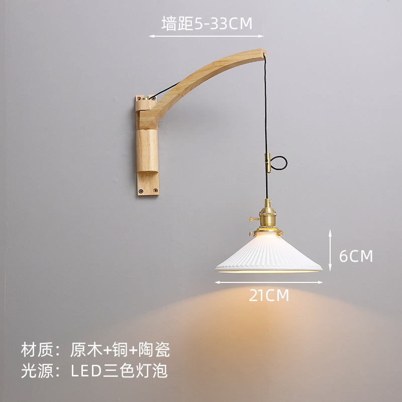 일본식 통나무 벽 램프 간단한 개폐식 접이식 거실 침실 머리맡 회전 로커 레스토랑 세라믹 유리 벽 램프