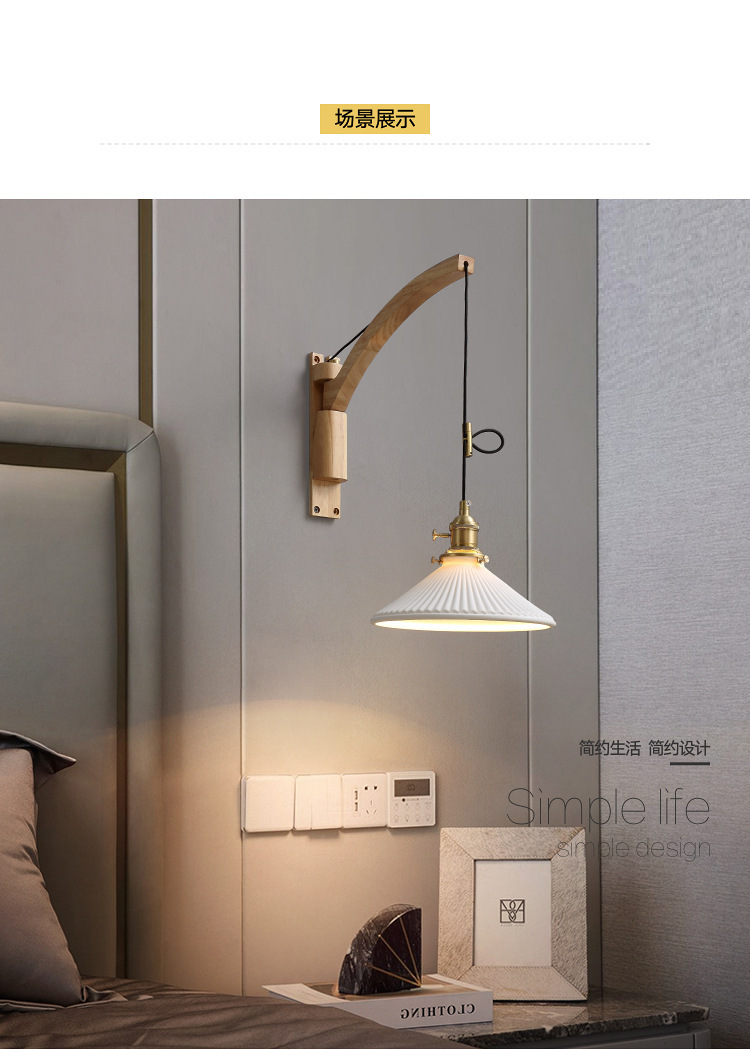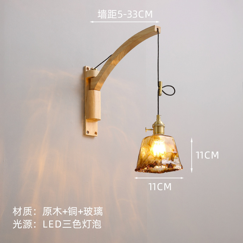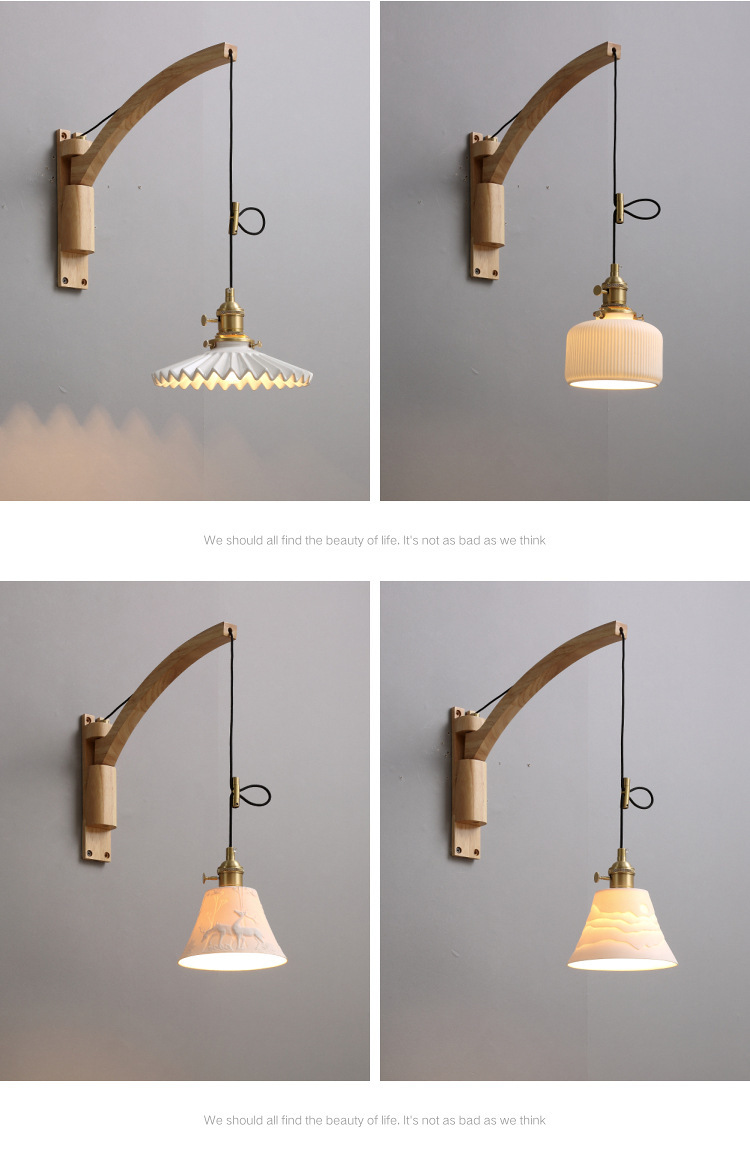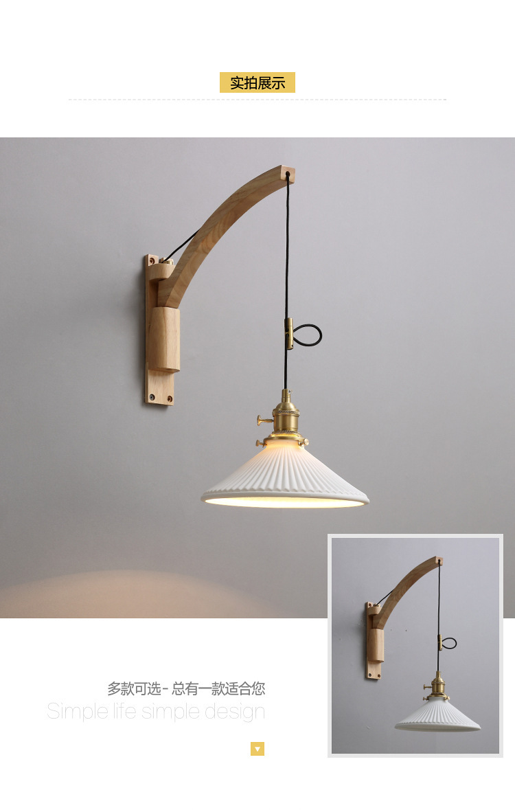 일본식 통나무 벽 램프 간단한 개폐식 접이식 거실 침실 머리맡 회전 로커 레스토랑 세라믹 유리 벽 램프스토어 가기